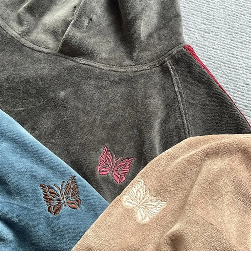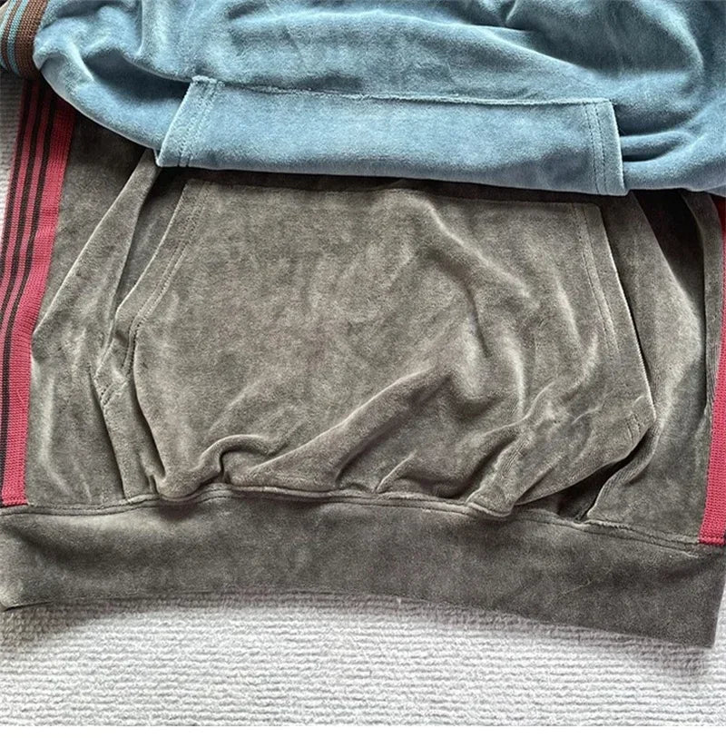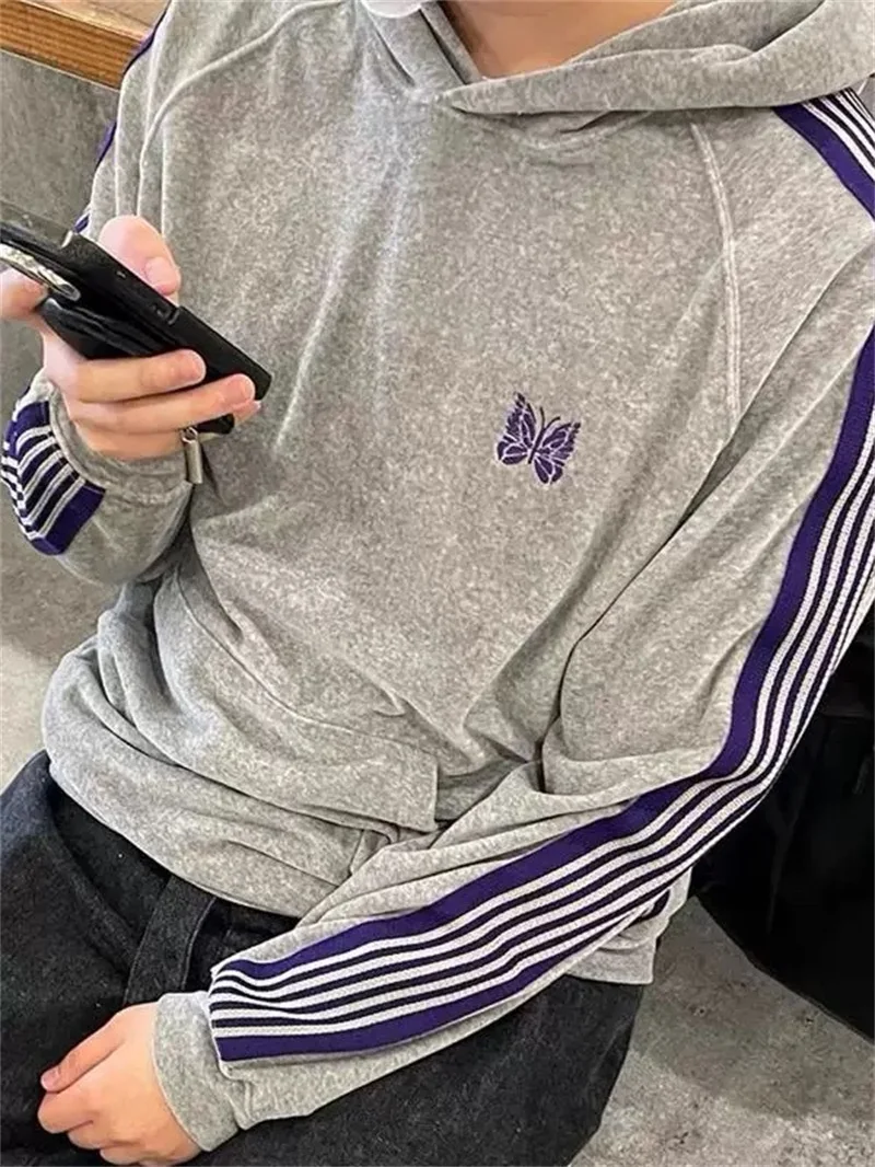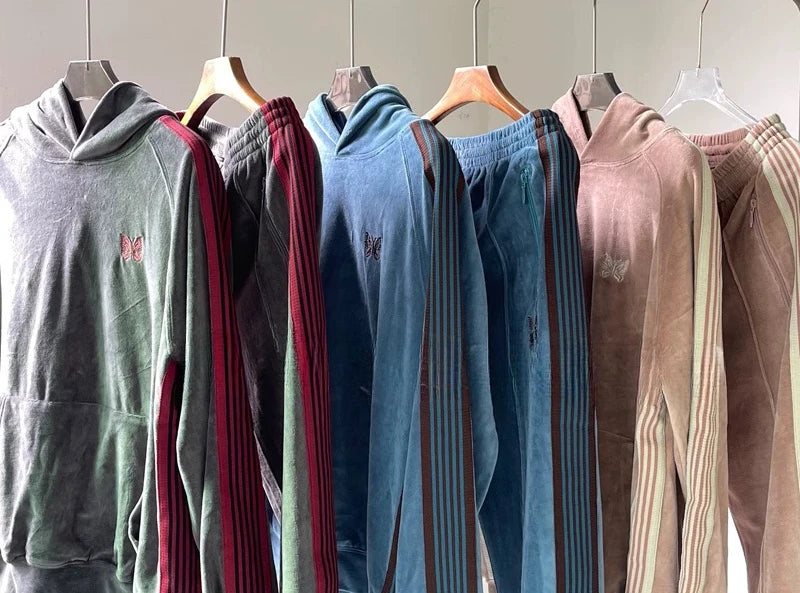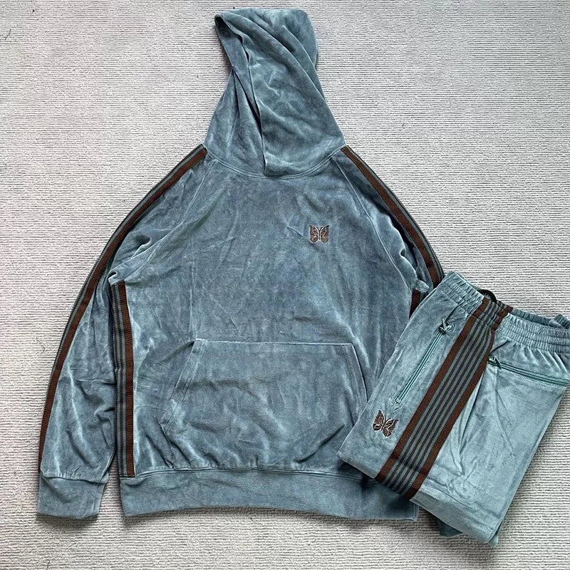GETADME 24ss Butterfly Embroidery AWGE Blue Velvet Hoodies Top Quality Mens Stripe Hooded Sweatshirt Tracksuit Set With Tags