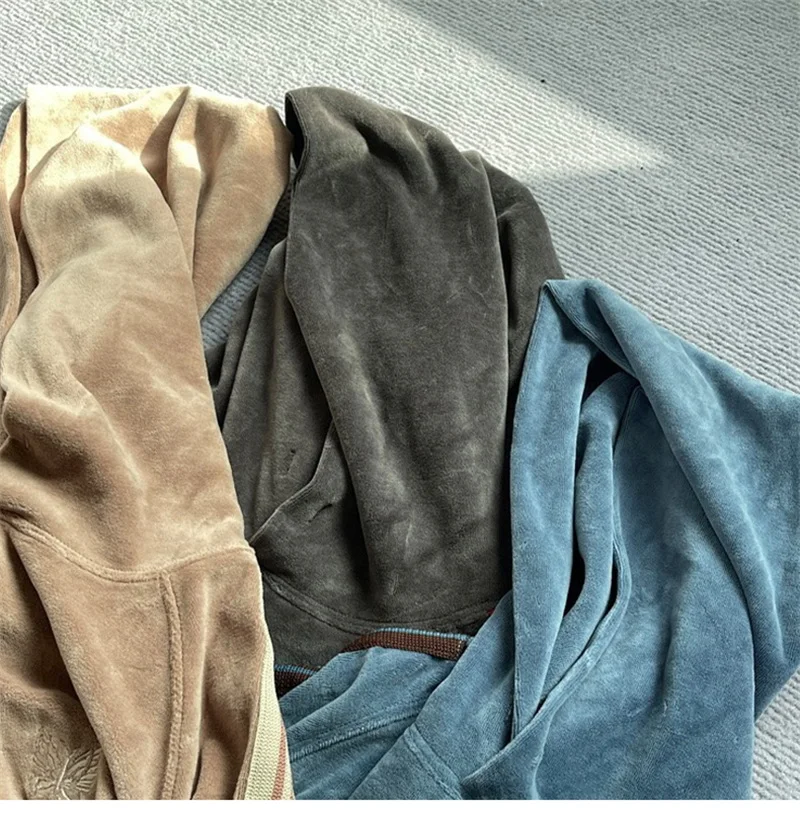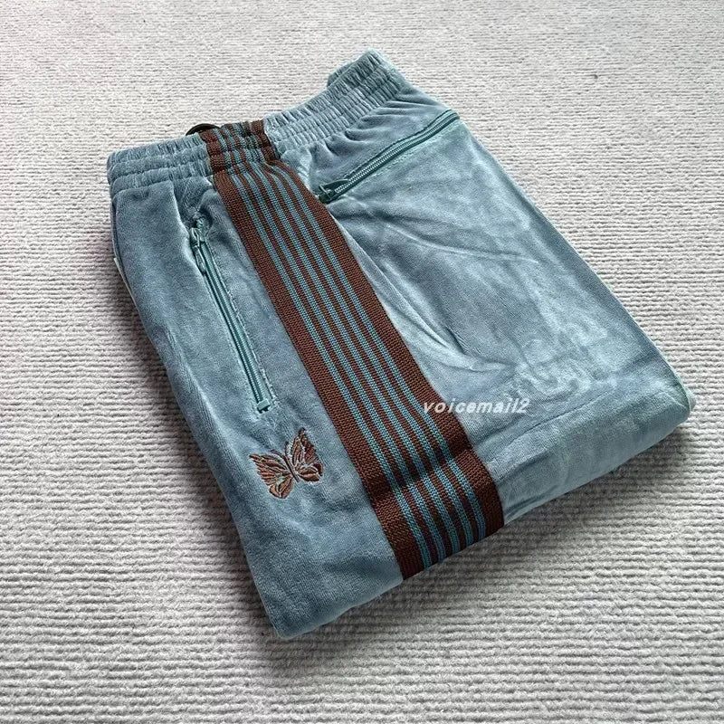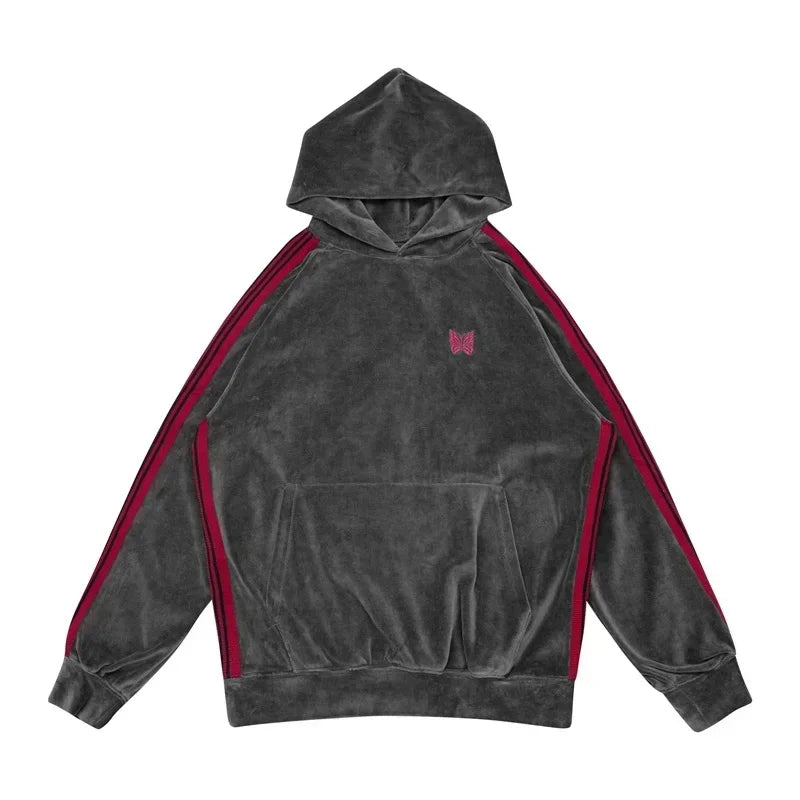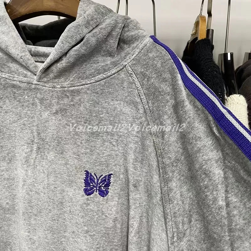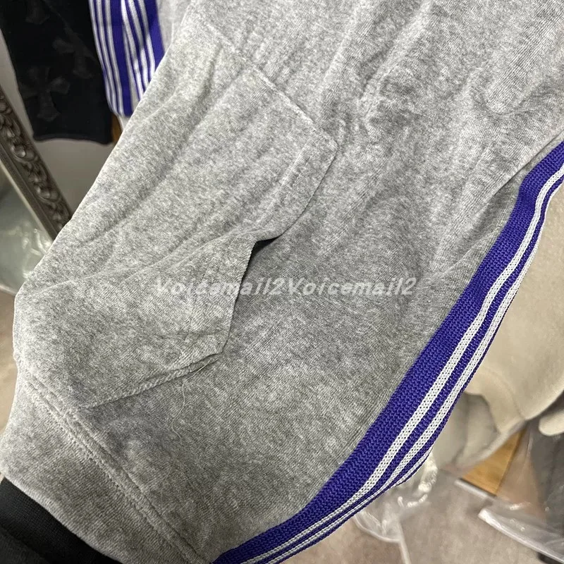 GETADME 24ss Butterfly Embroidery AWGE Blue Velvet Hoodies Top Quality Mens Stripe Hooded Sweatshirt Tracksuit Set With Tags