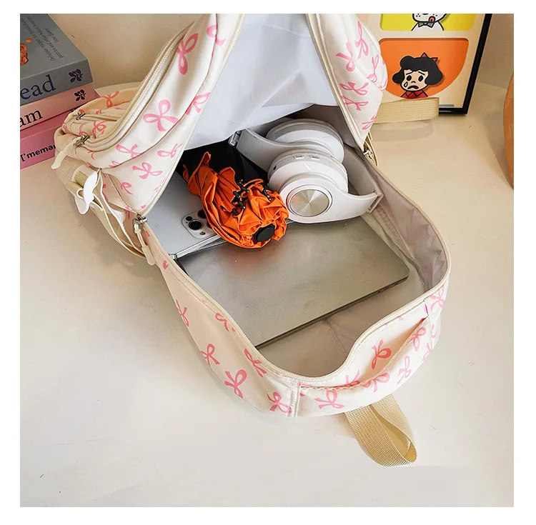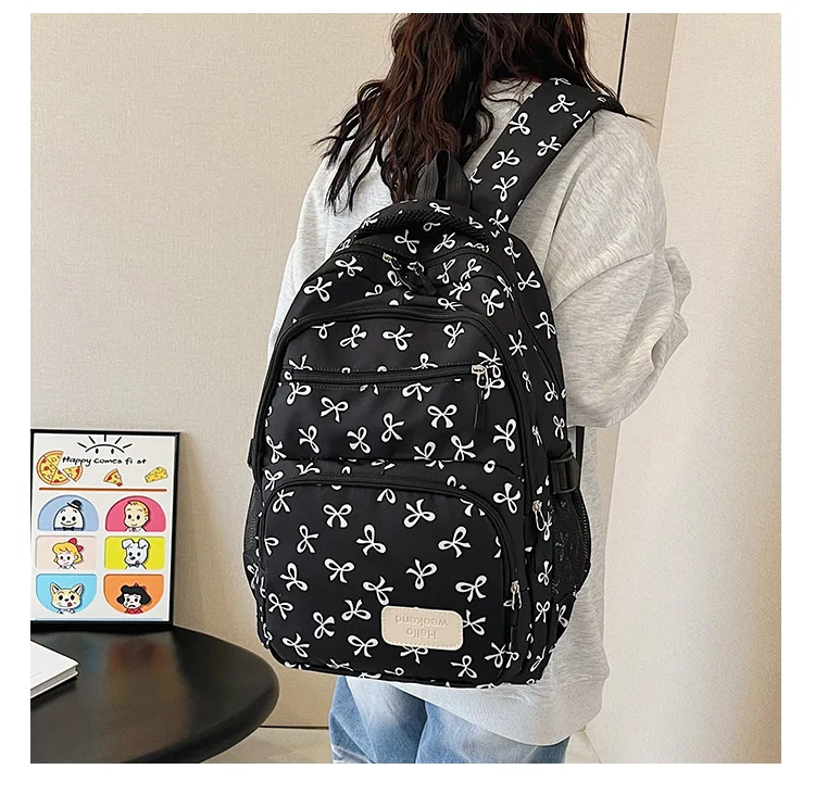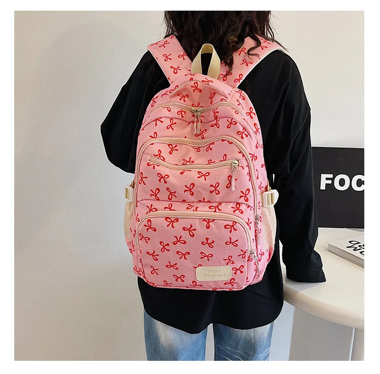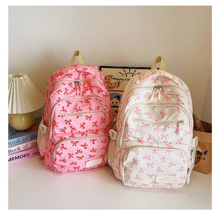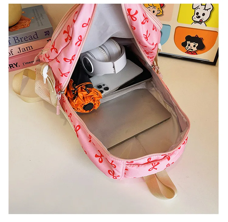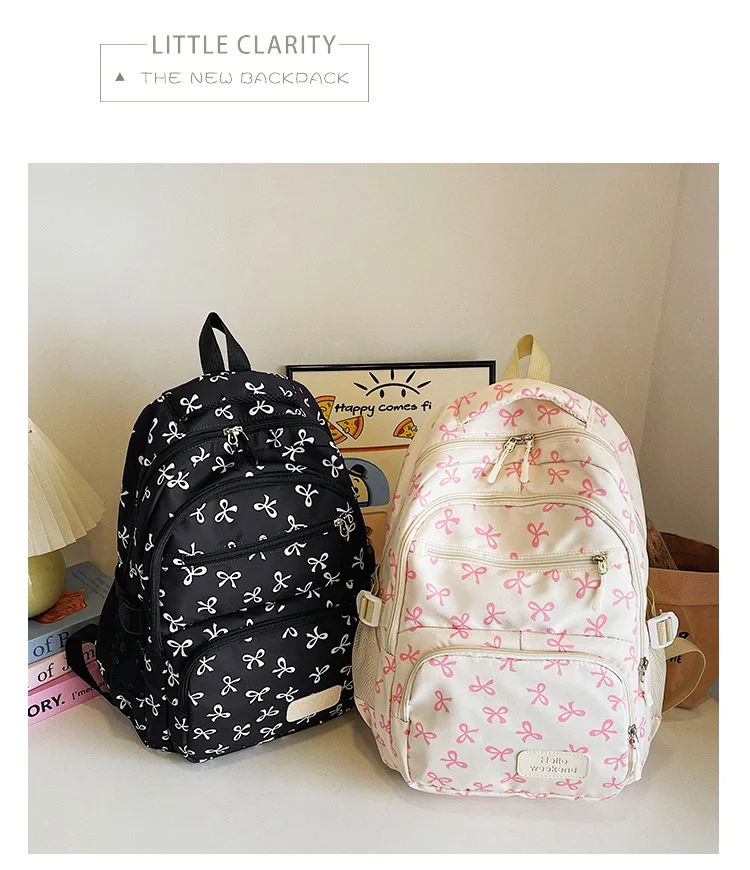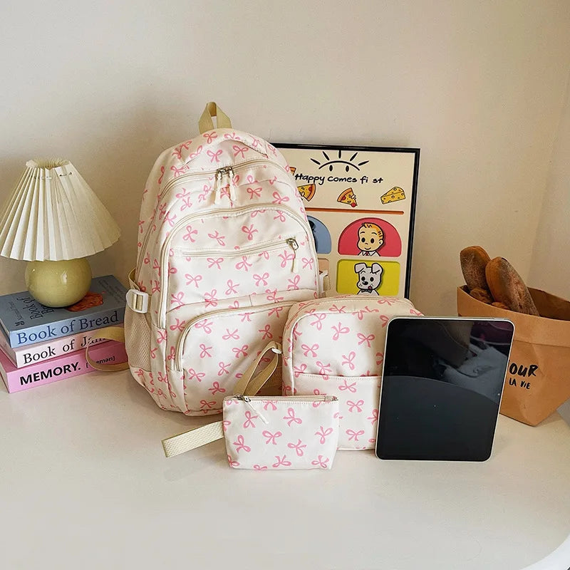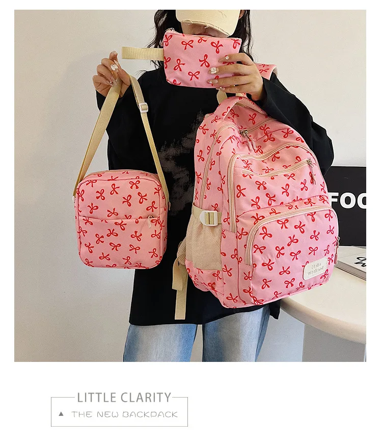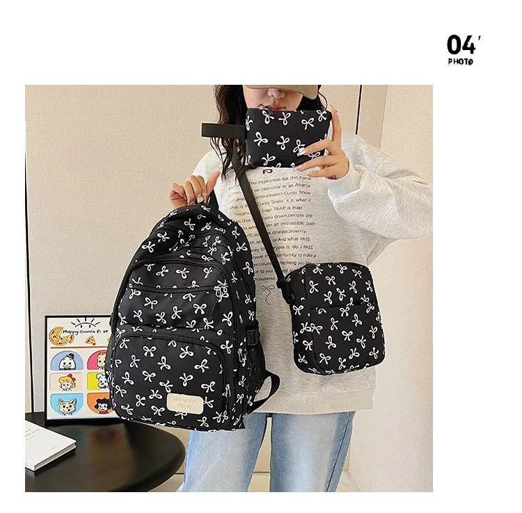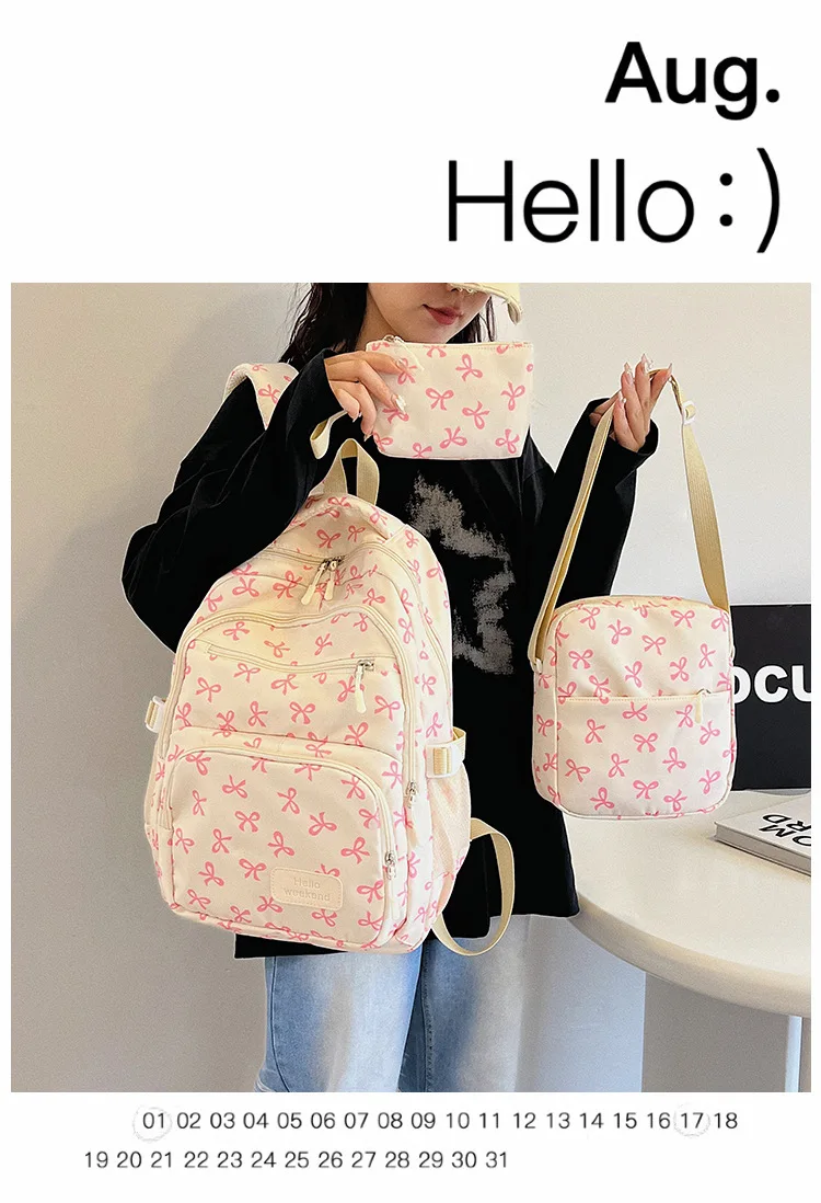 GETADME 3 Pcs/Set Cute Large Capacity Backpack For girl Bow Print Nylon School Bag Adjustable Strap women Travel Computer Backpack
