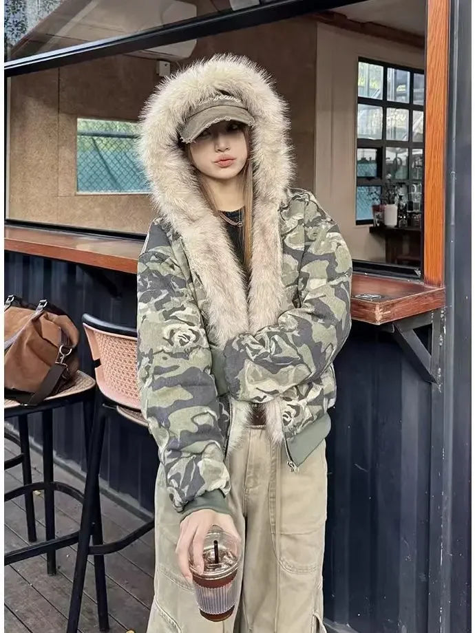 GETADME American Vintage Camouflage Plush Hat Jacket Y2K High Street Hip hop Harajuku Loose Women Make Old Hoodies Fashion Streetwear