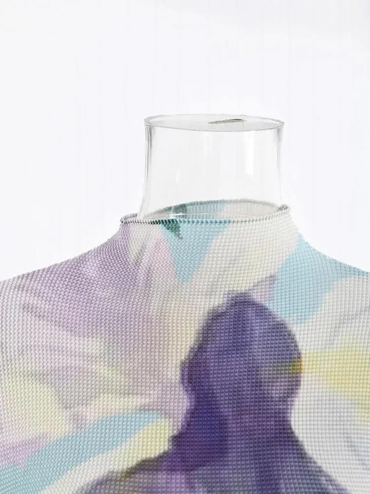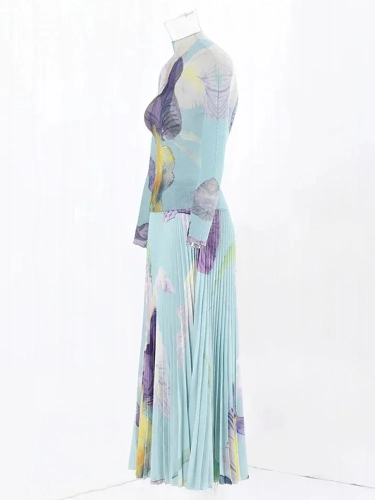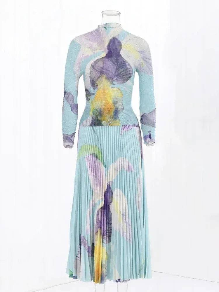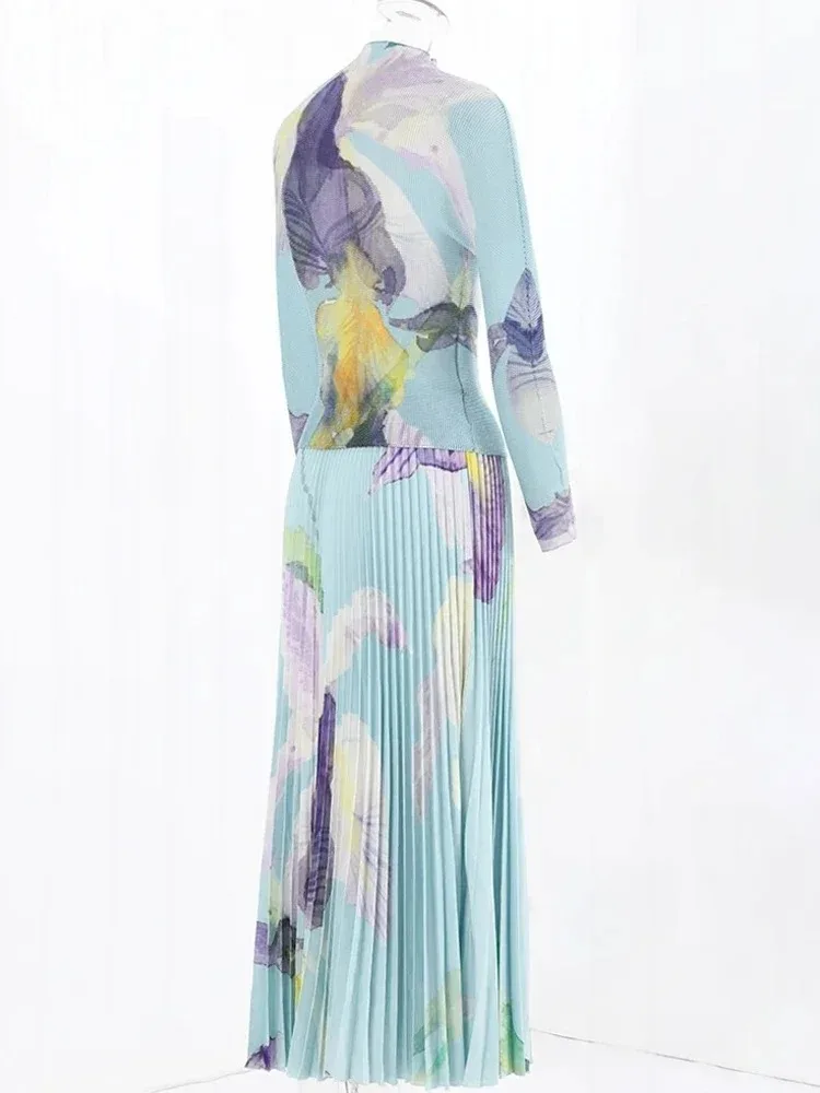 GETADME Miyake Pleated Set 2025 Spring New Half High Collar Long Sleeves Slim T-shirt&Loose A-line Skirts Women 2 Piece Sets 9A305