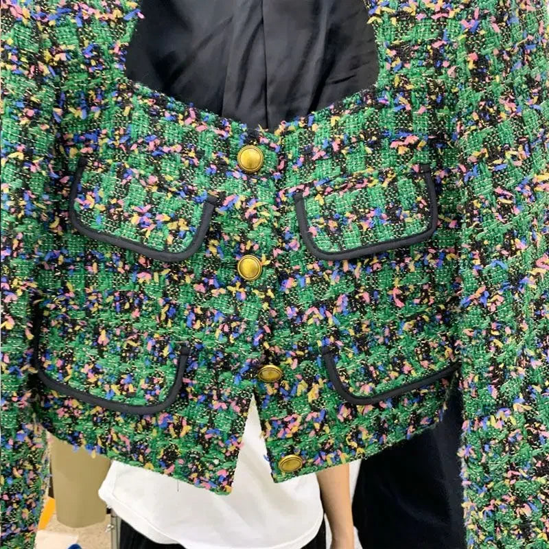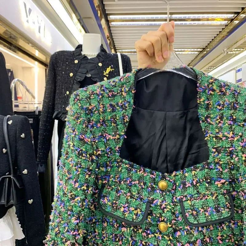 GETADME Autumn Winter 2025 Sqaure Neck Tweed Jacket Women Vintage Elegant Small Fragrant Short Coat French Style Chic Fashion Tops