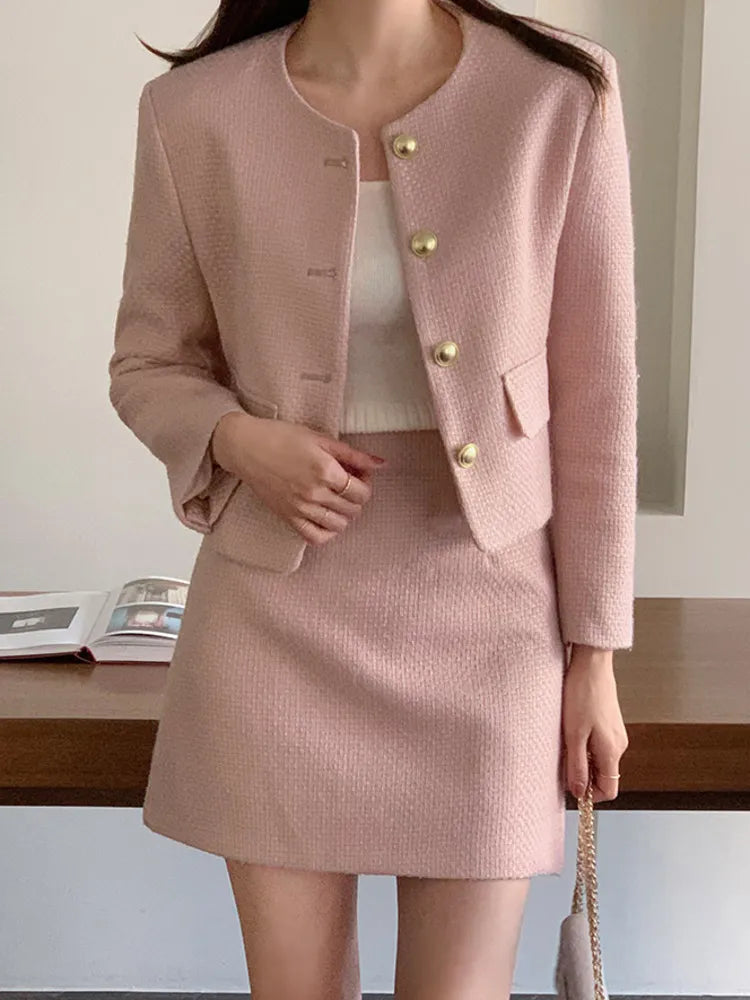 Getadme-Autumn Winter Elegant Fashion Small Fragrance Tweed Two Piece Set For Women Jacket Coat + Skirt Suits Korean OL 2 Piece Outfits