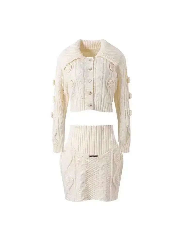 GETADME Autumn Winter Solid Knitting 2-piece Set Women Korean Fashion Slim Long Sleeve Lapel Sweater + Elastic Waist Thin Skirt Suit New