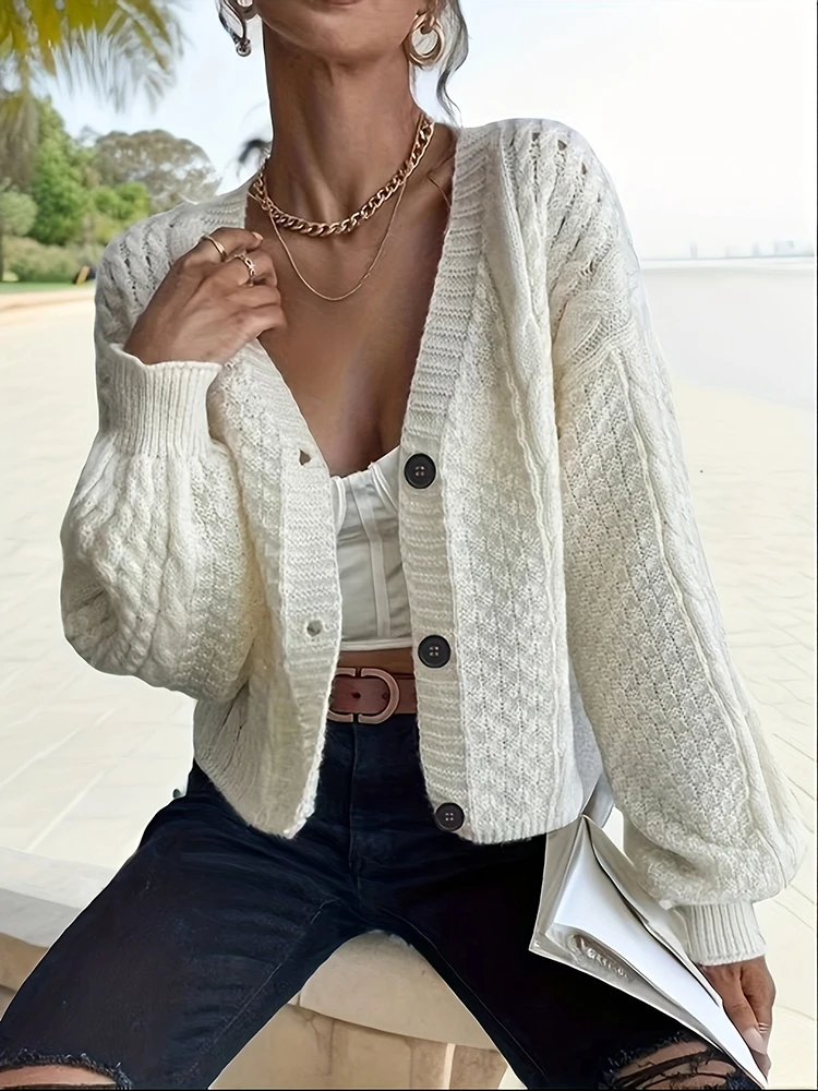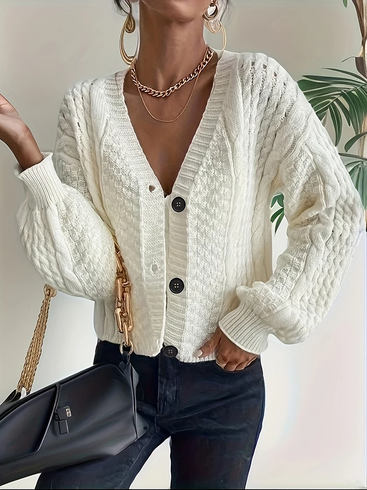 GETADME Autumn Winter white Ribbed Knit cardigan for women Clothes Single Breasted V Lapel Long Sleeve Knitted Buttons-up Sweater jumper