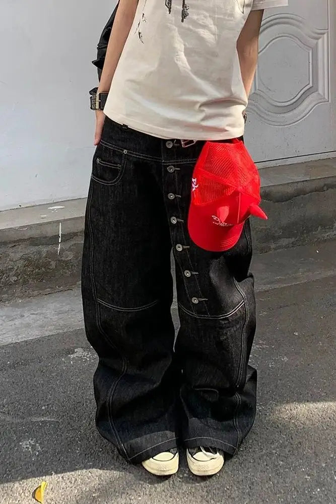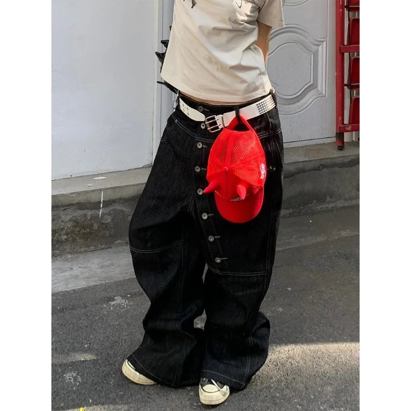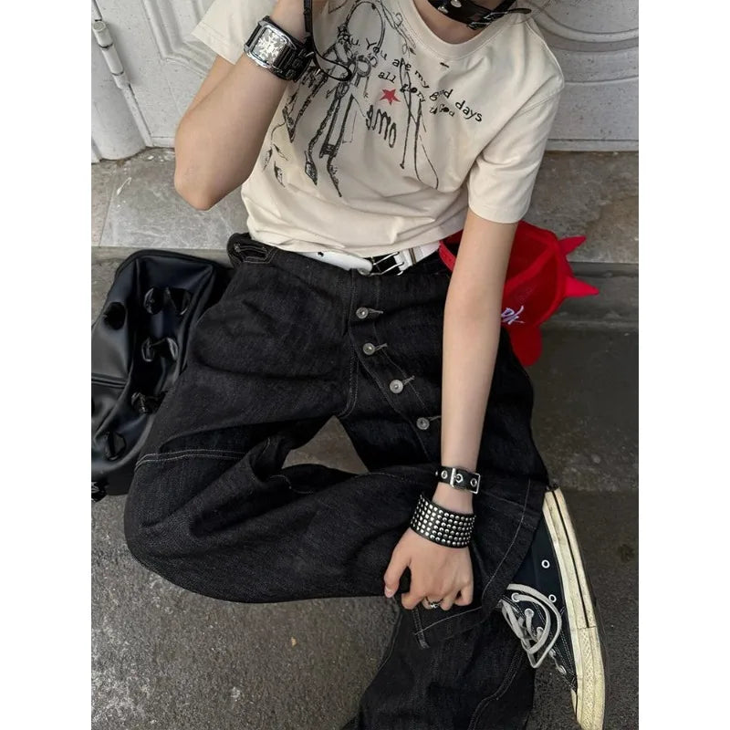 GETADME Black Gothic Y2k Emo Baggy Jeans Women Vintage Japanese 2000s Style Denim Trouser Harajuku Grunge Jeans Pants Oversize Clothes