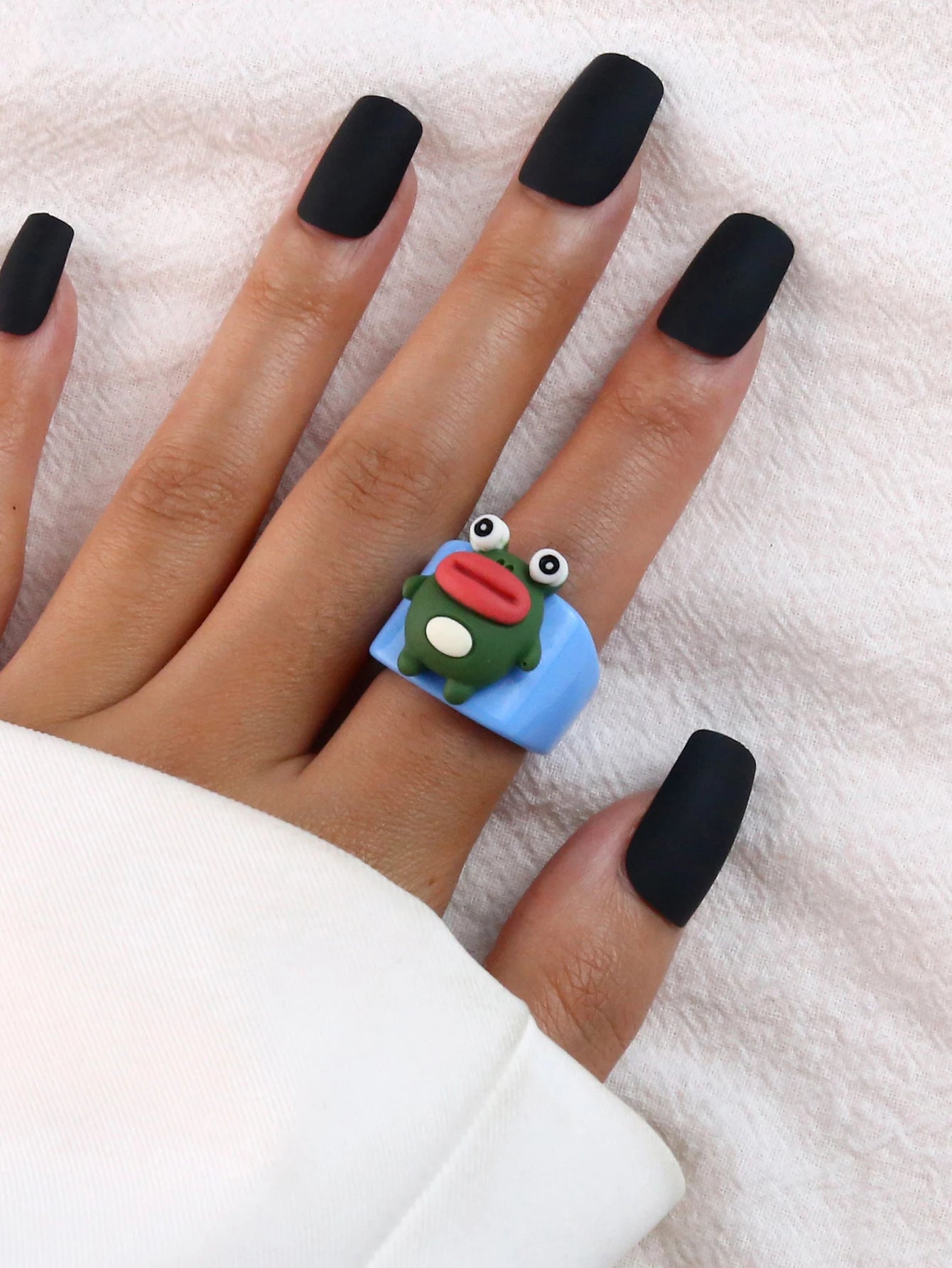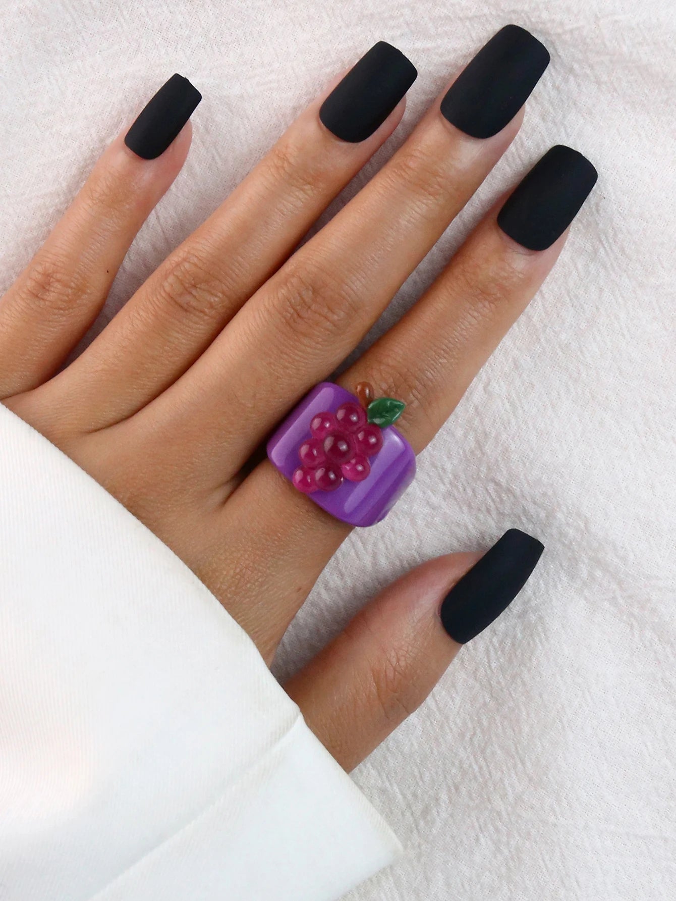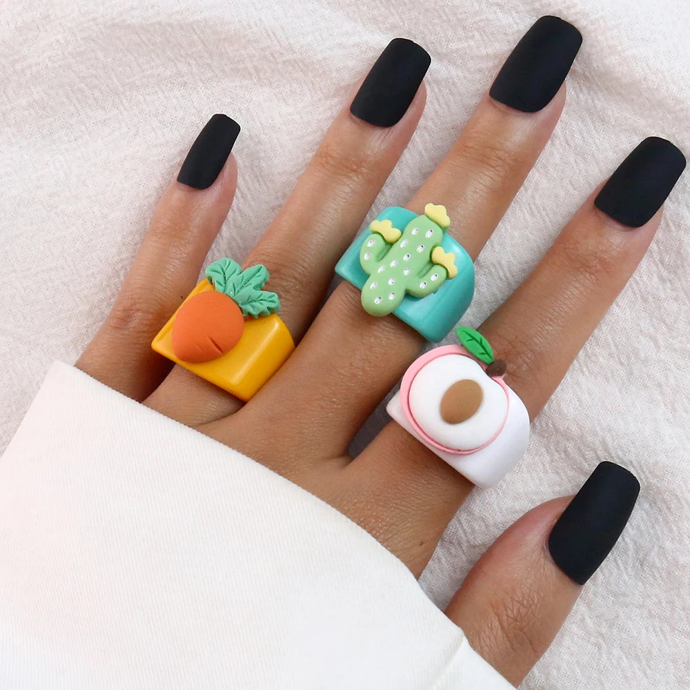 GETADME Cartoon Fruit Ring Women Fashion Korean Cute Animal Resin Acrylic Ring Set Christmas Birthday Party Gift Jewelry for Female Girl