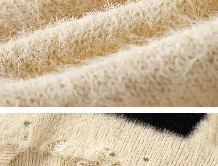GETADME Cartoon Kawaii Cat Print Vintage American Couples Y2k Sueter Mujer Knitted Pullovers O Neck Sweaters Preppy Style Sweet Women
