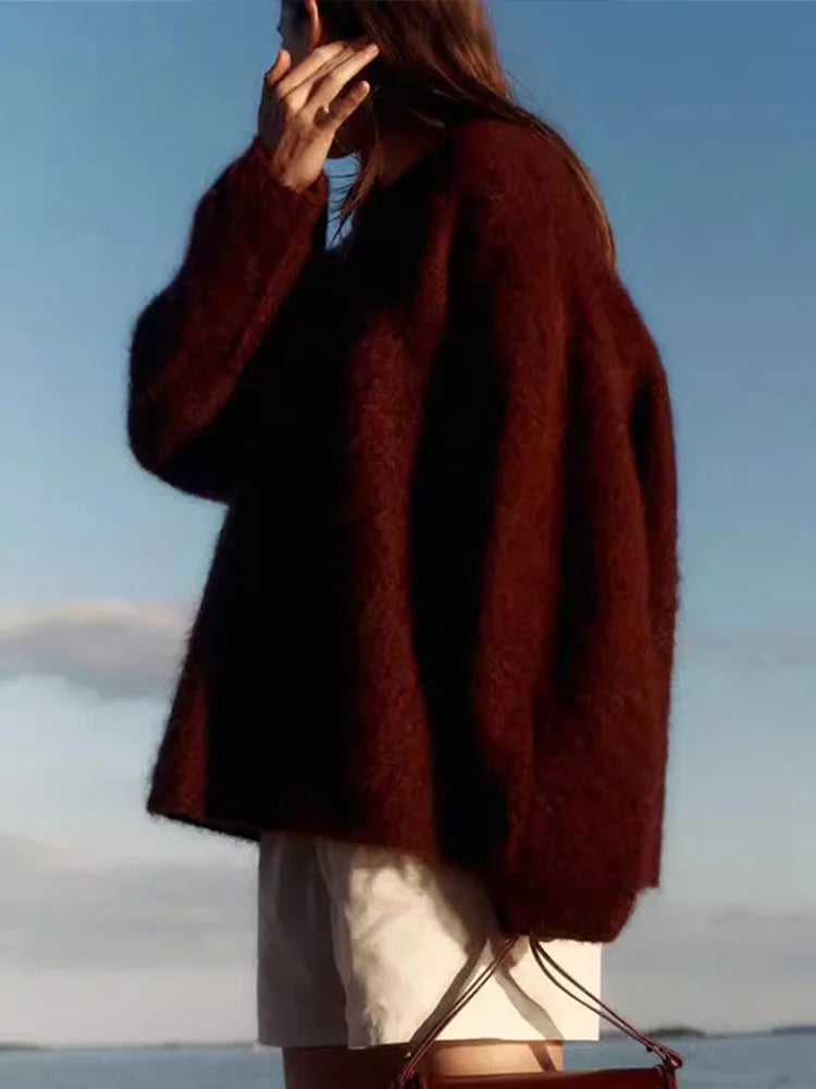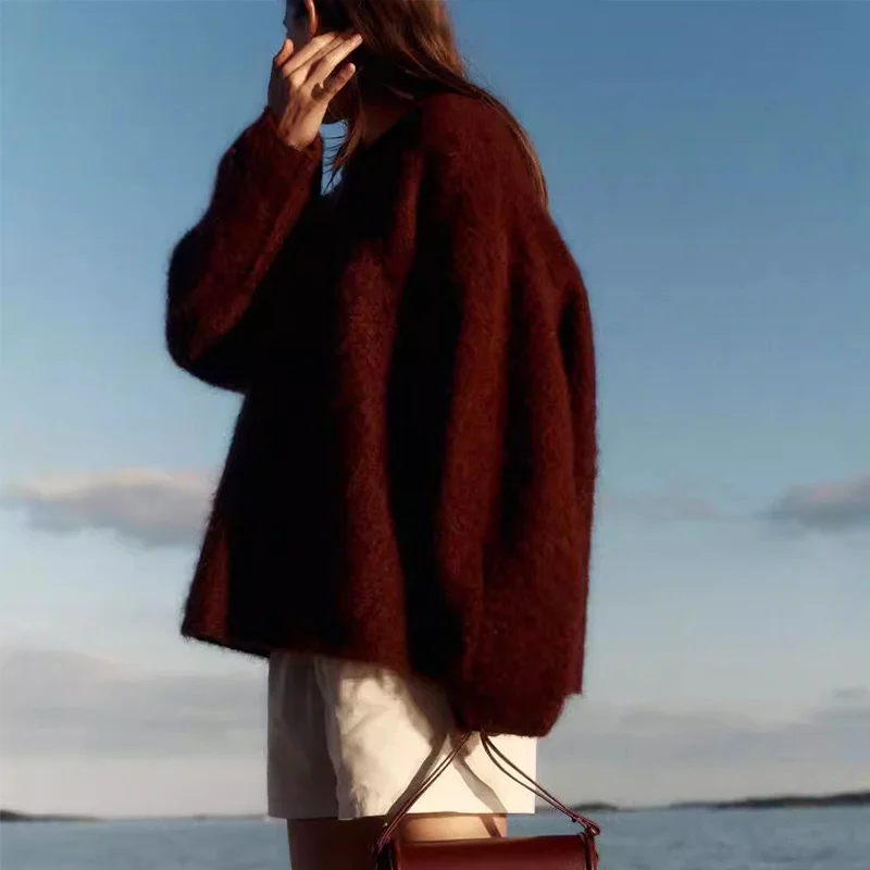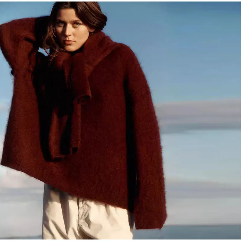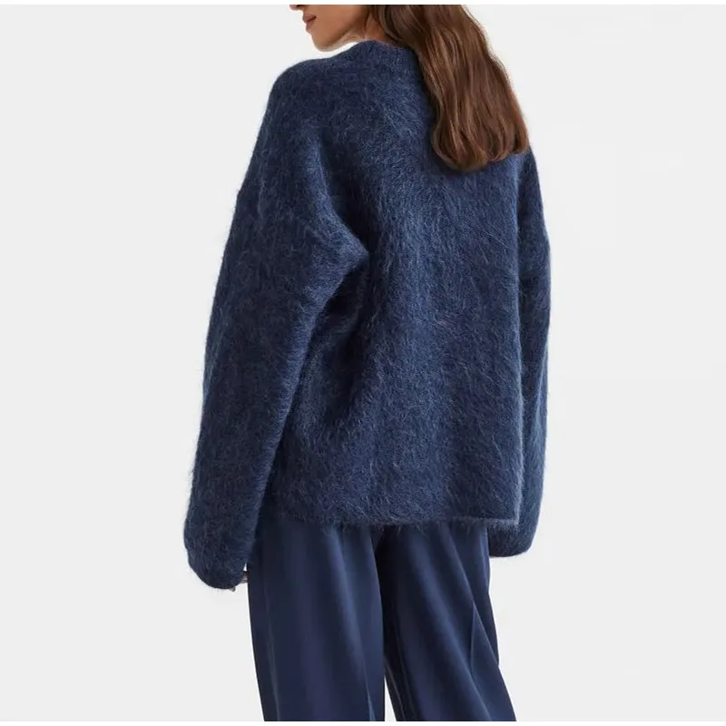 GETADME Casual Knitted Solid Sweater Women Fashion Thicken Green Loose O-Neck Long Sleeves Pullover 2025 Autumn Winter Warm Knitwear