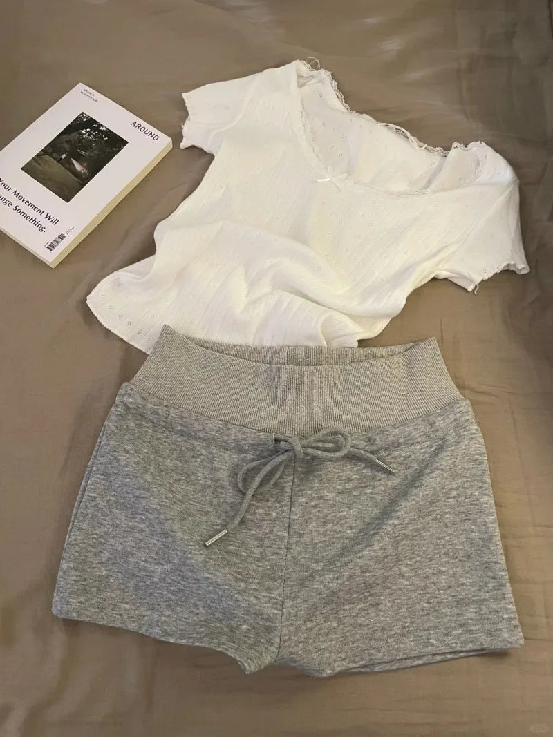 GETADME Casual Sleepwear Women Pajama Sets Korean Piiama Summer Shorts Sets 2 Pieces Short Sleeve Night Wears Solid Home Suit 2025 New