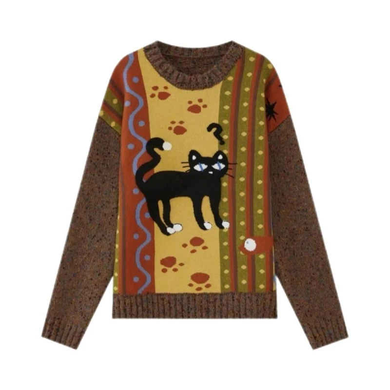 GETADME Deeptown Harajuku Cartoon Sweaters Women Vintage Y2k Streetwear Knitted Pullover Grunge Retro Long Sleeve Aesthetics Sweaters