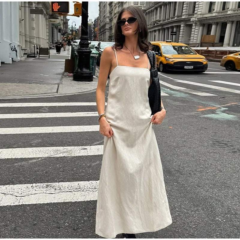 GETADME Elegant Cotton Lined Slip Dress Women Solid Tube Sleeveless Long Dressess Female 2025 Spring Summer Fashion Lady Beach Vestidos