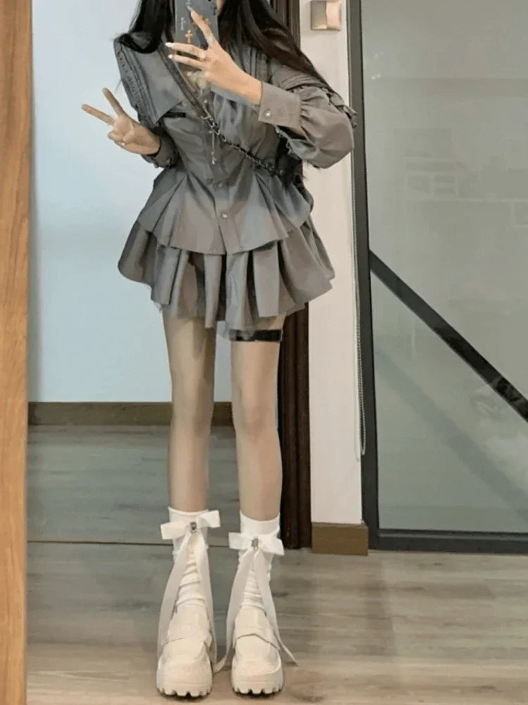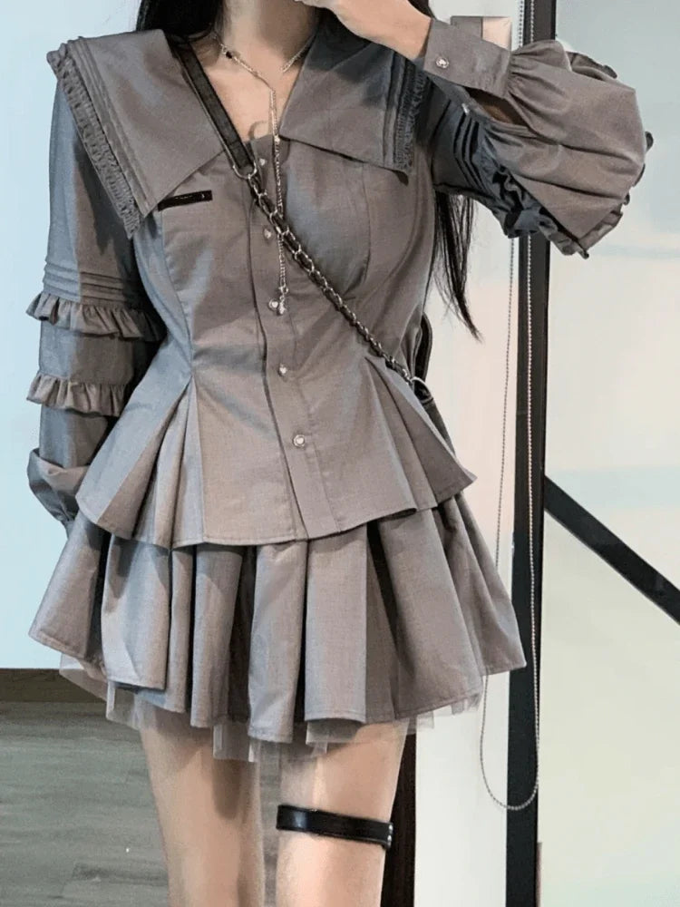 GETADME Elegant Office Lady 2 Piece Dress Set Women Casuall Long Sleeve Blouse + Retro Mini Skrits 2025 Summer Korean Fashion Suits