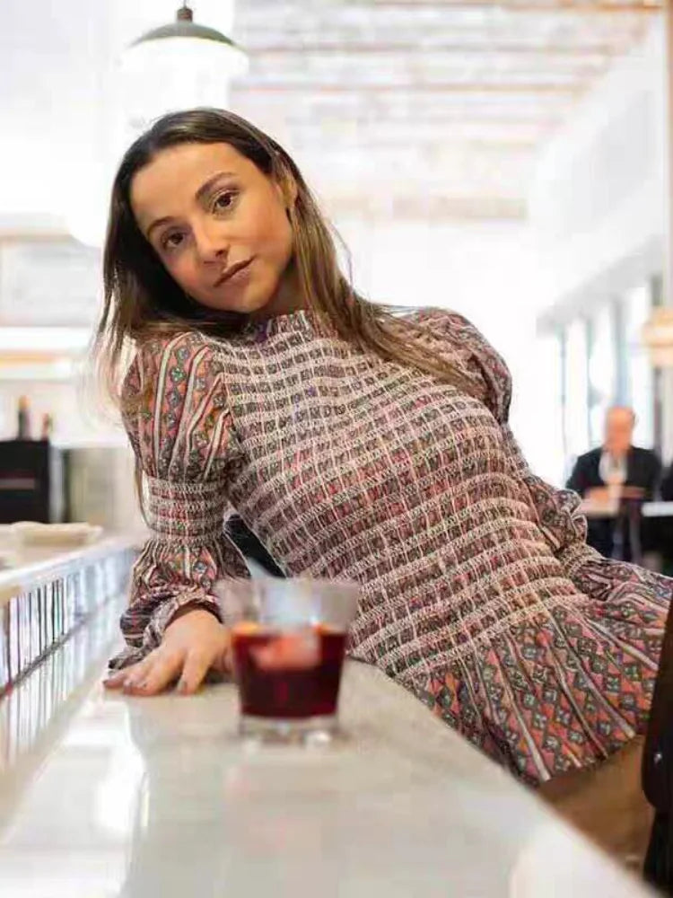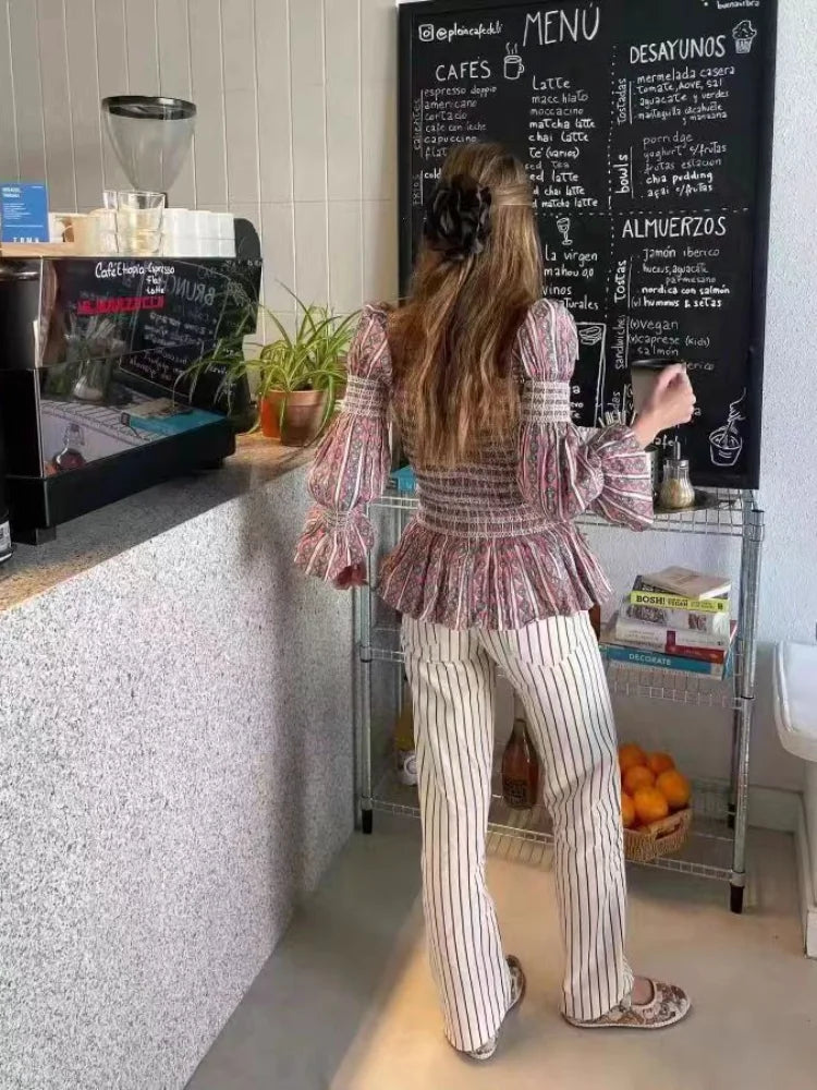 Model Number : Fashion Plaid Print Puff Sleeve Shirt
