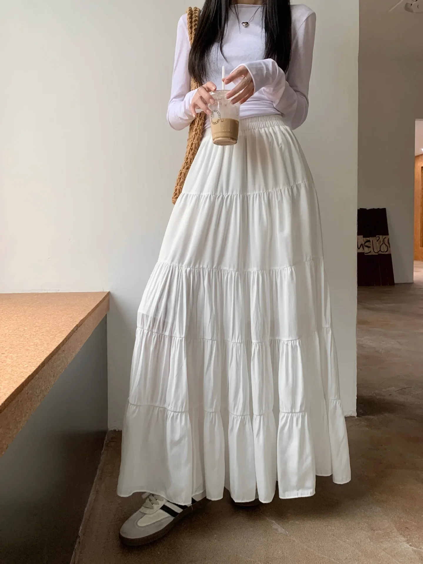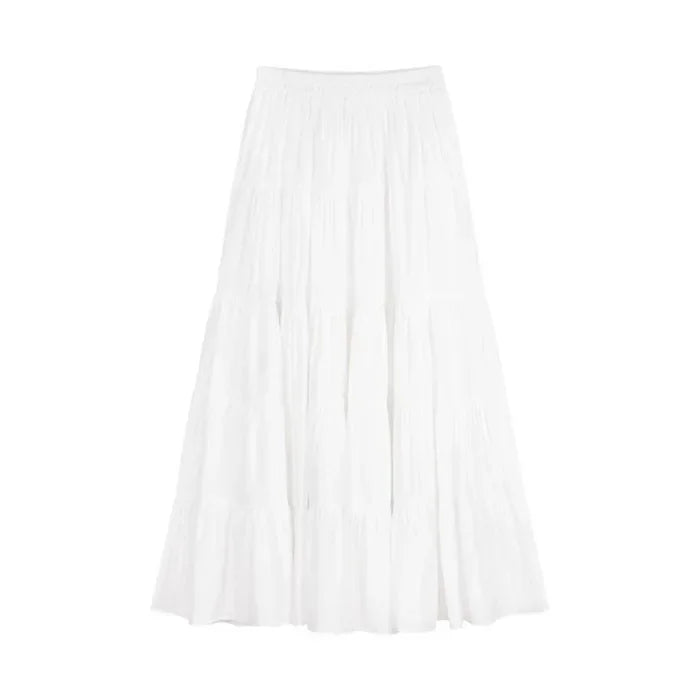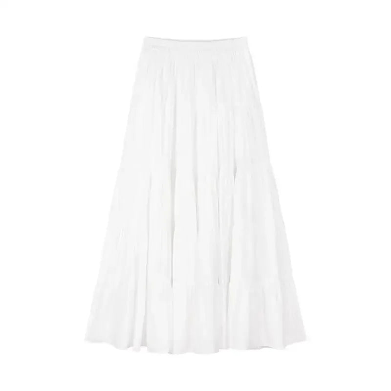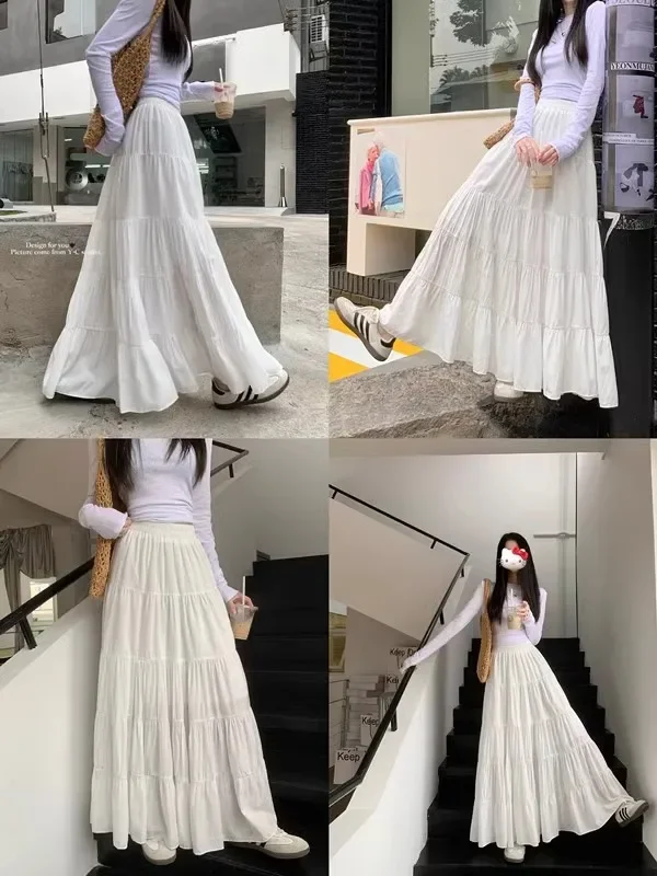 GETADME Elegant Versatile High-waisted Cake Long Dress White Skirt For Women Summer 2025 New Style Big Umbrella Skirt