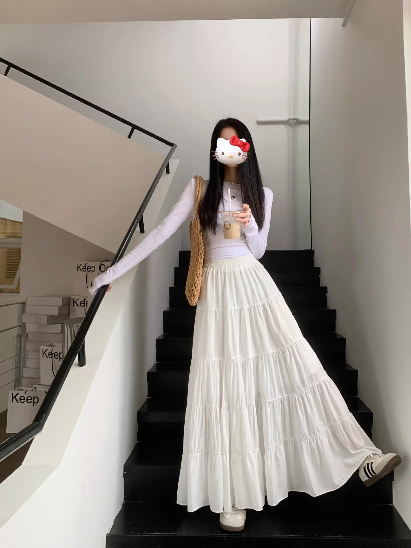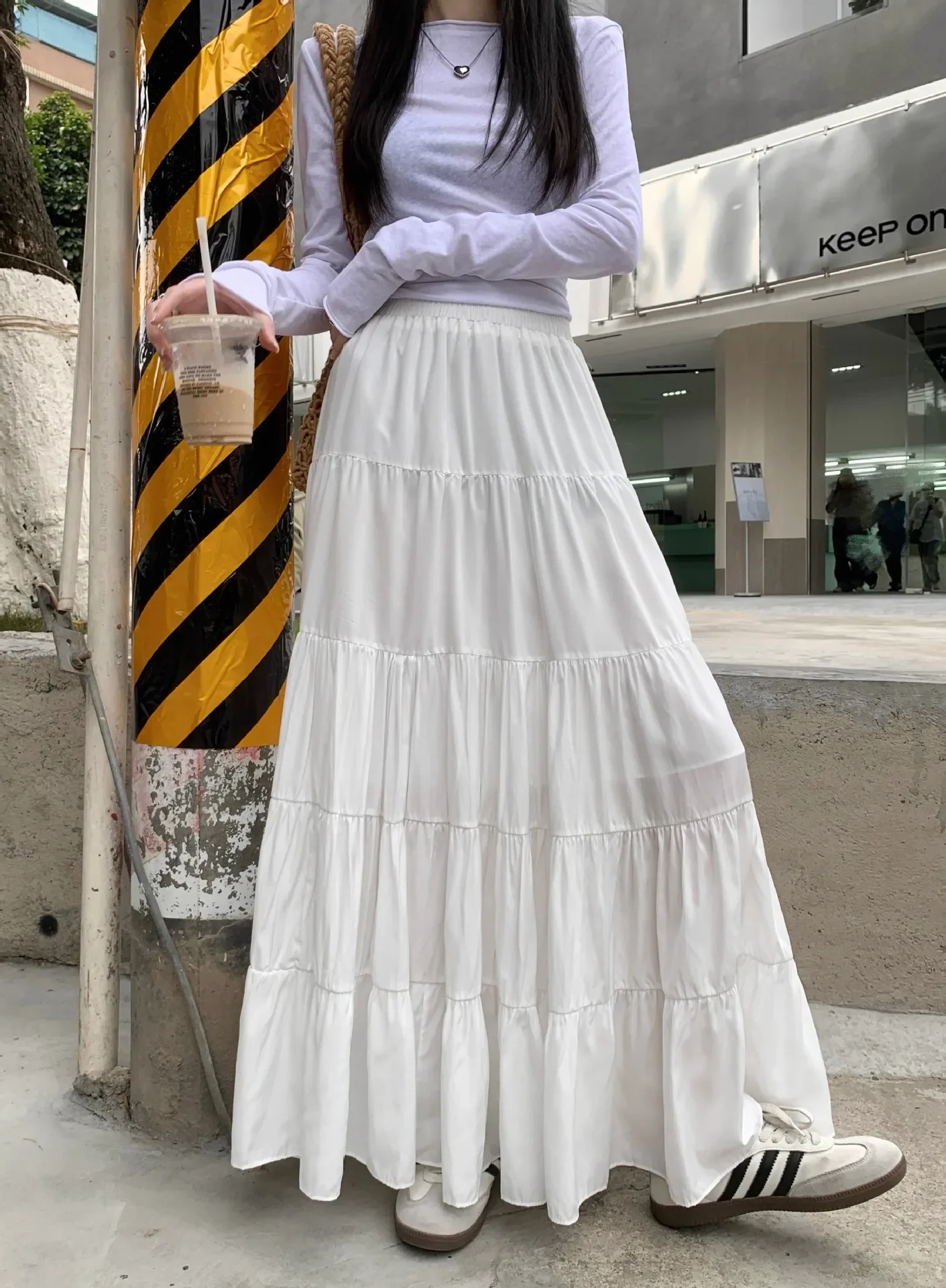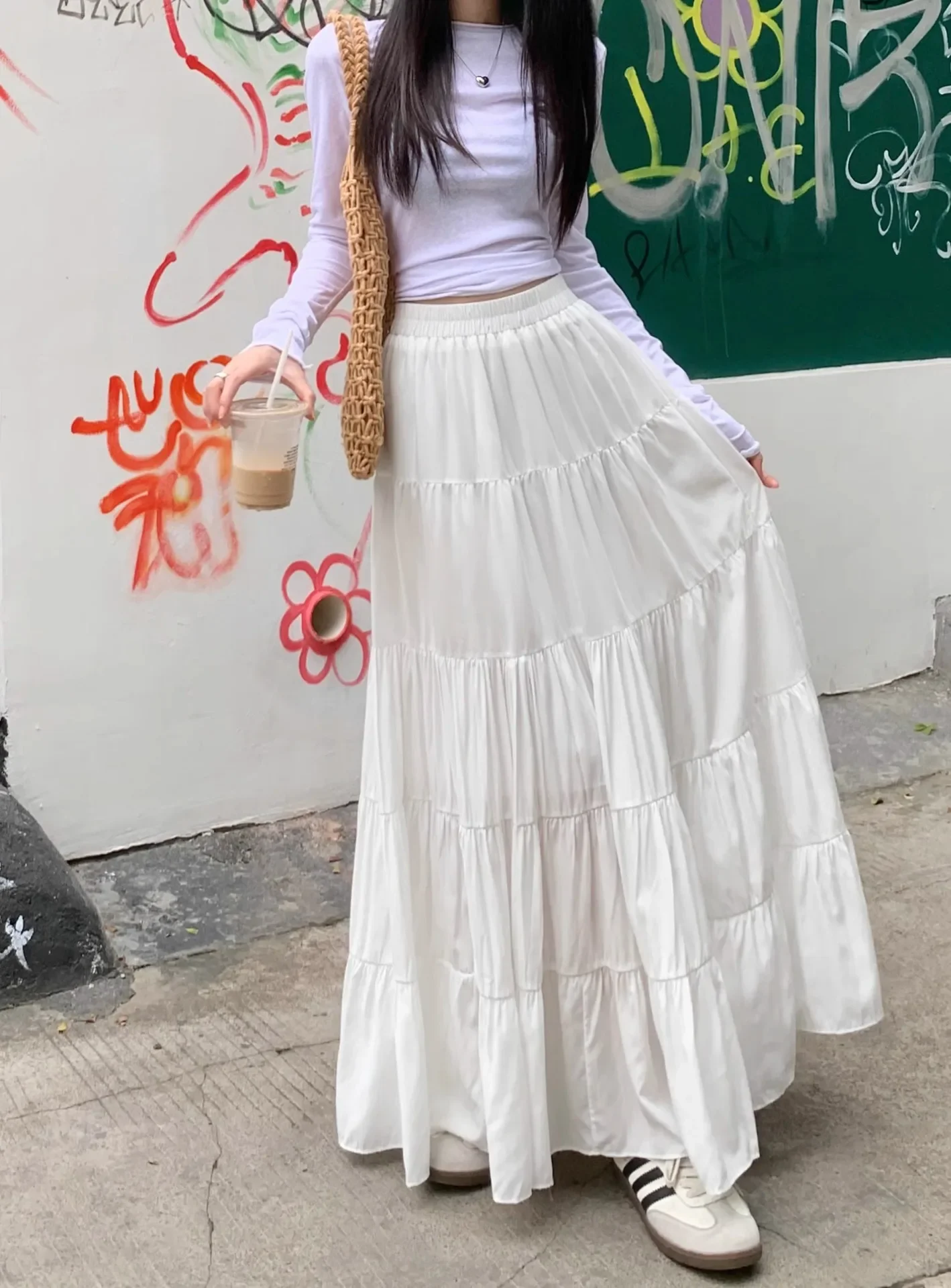 GETADME Elegant Versatile High-waisted Cake Long Dress White Skirt For Women Summer 2025 New Style Big Umbrella Skirt