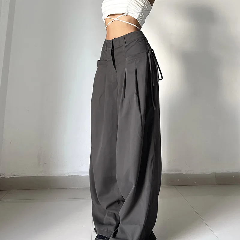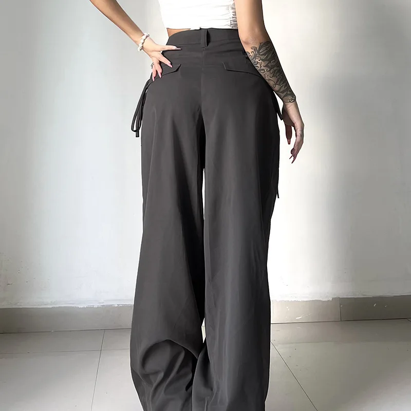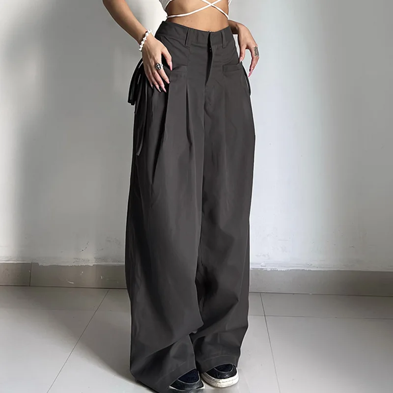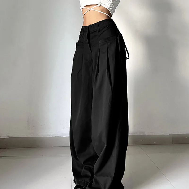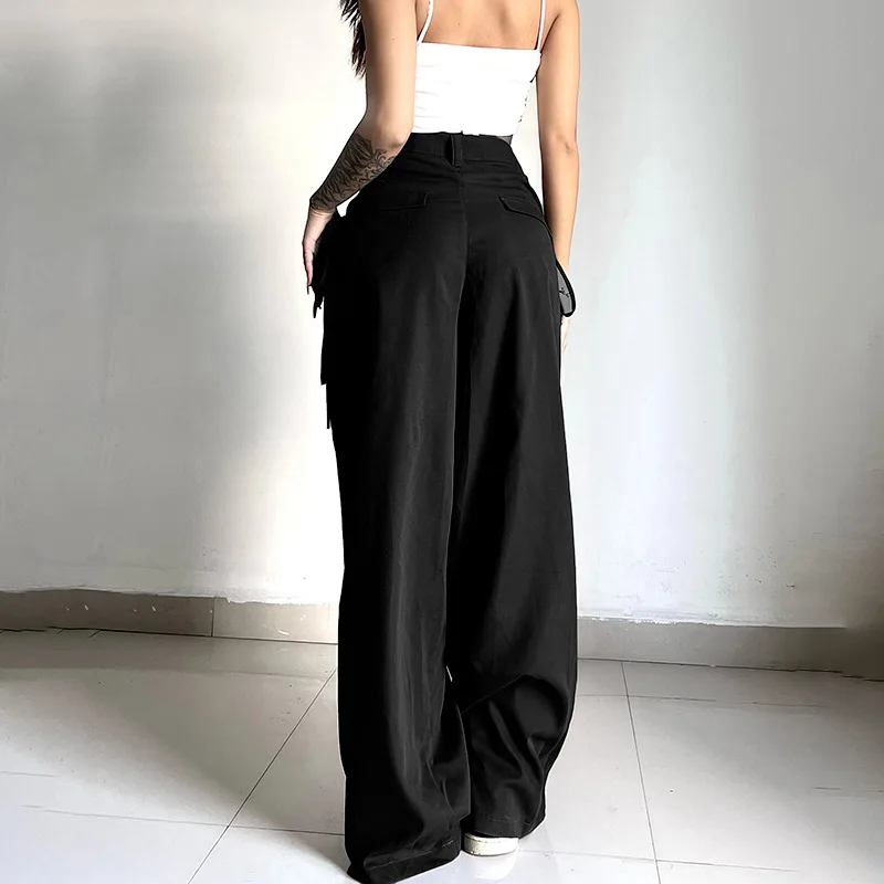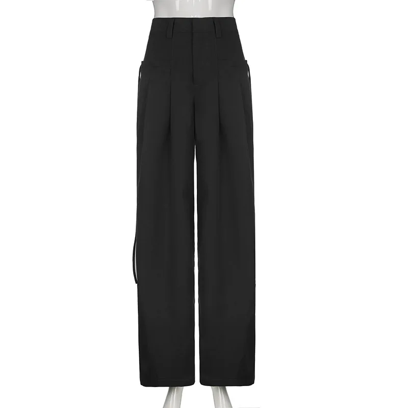 GETADME Elegant Women Wide Leg Pants Y2K High Waist Trouser Autumn Office Ladies Pocket Loose Full Length Suit Trousers Streetwear