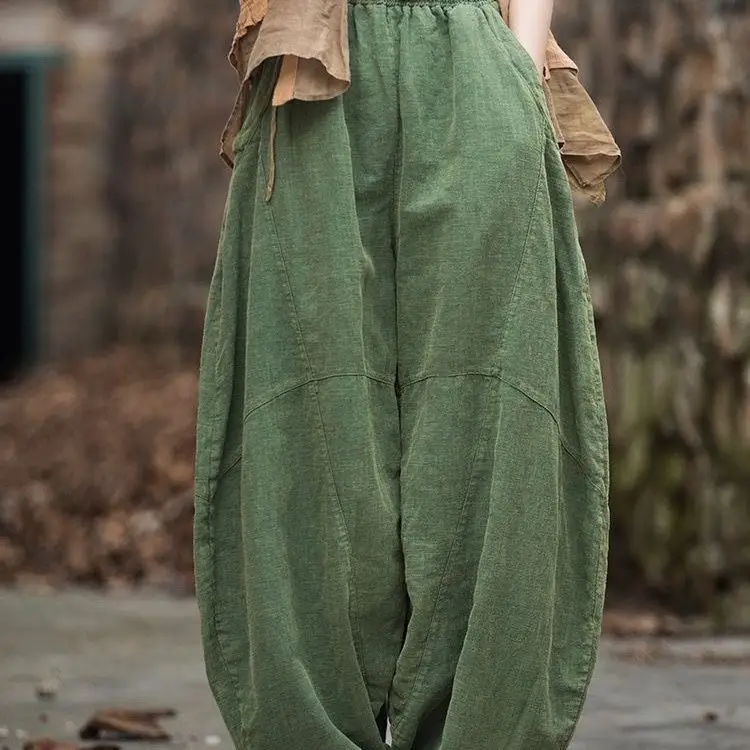 GETADME Elegant Women's Cotton Linen Baggy Cargo y2k Pants Vintage Elastic Waist Trousers Loose Casual Long Wide Leg Oversize Clothes