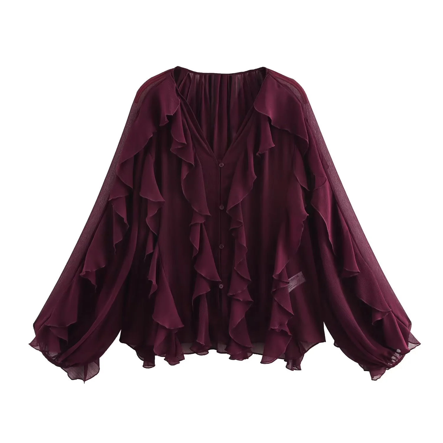 GETADME European And American Style 2025 Spring New Women's Retro Loose Casual Simple V-neck Layered Decorative Shirt