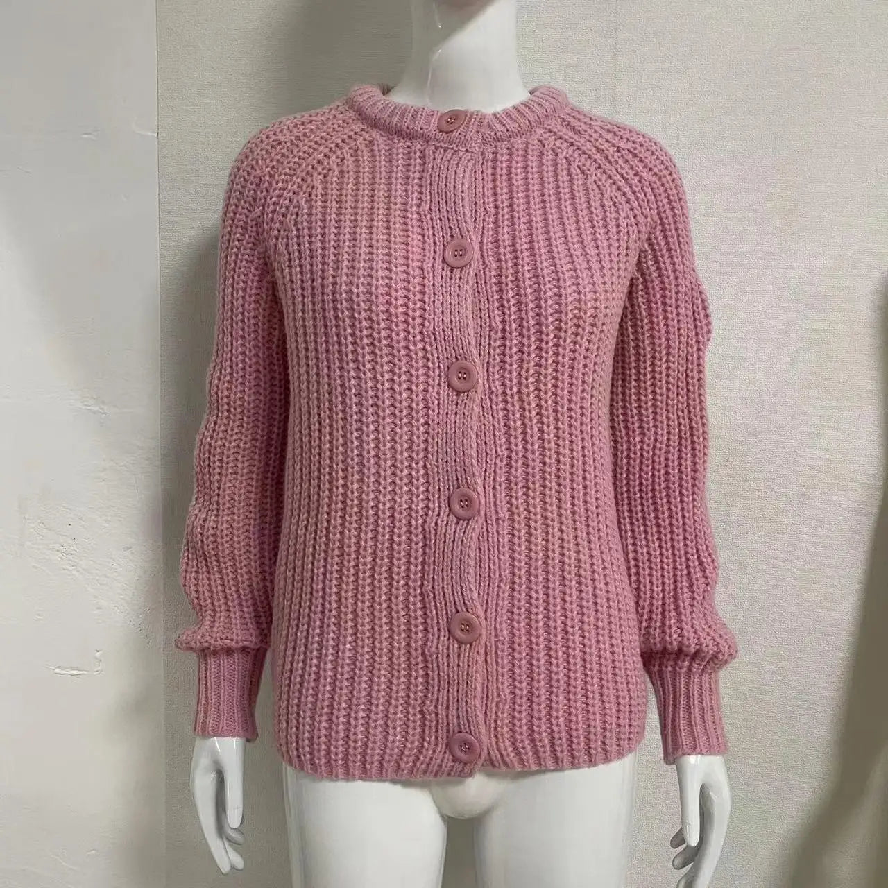 Fall 2024 Luxury Clothes Womens Sweaters Long Sleeve Top Solid Loose Casual Sweater Vest Cable Knit Sweater Pink Cardigans Y2k