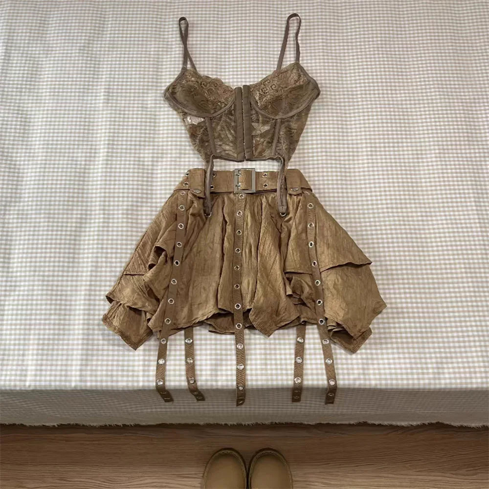 GETADME Fashion Harajuku Vintage 3 Piece Set Woman Short Cardigan + Slim Vest + Y2k E-Girl High Waist Skirt Hot Girls Korean Style Suit
