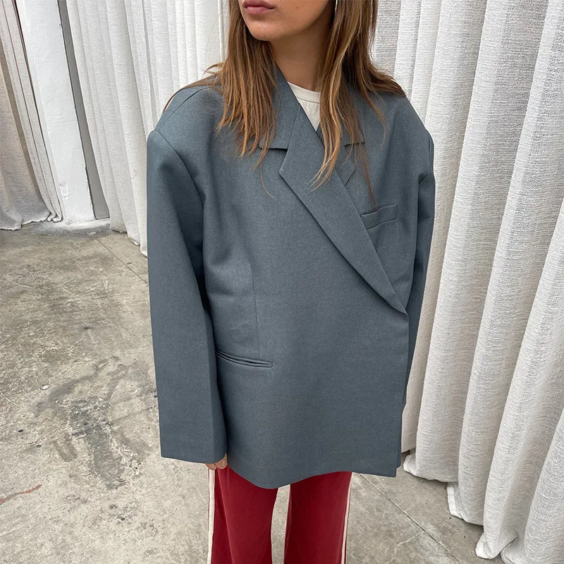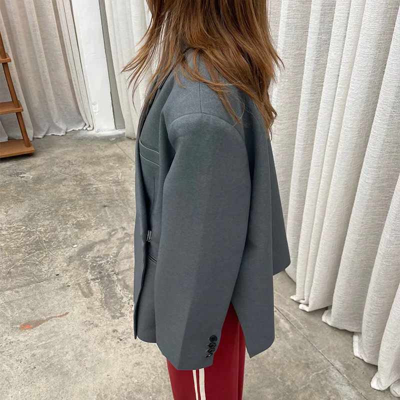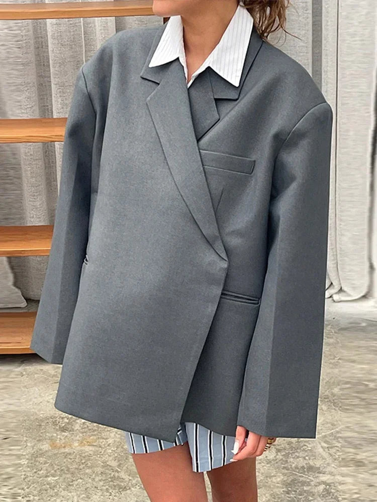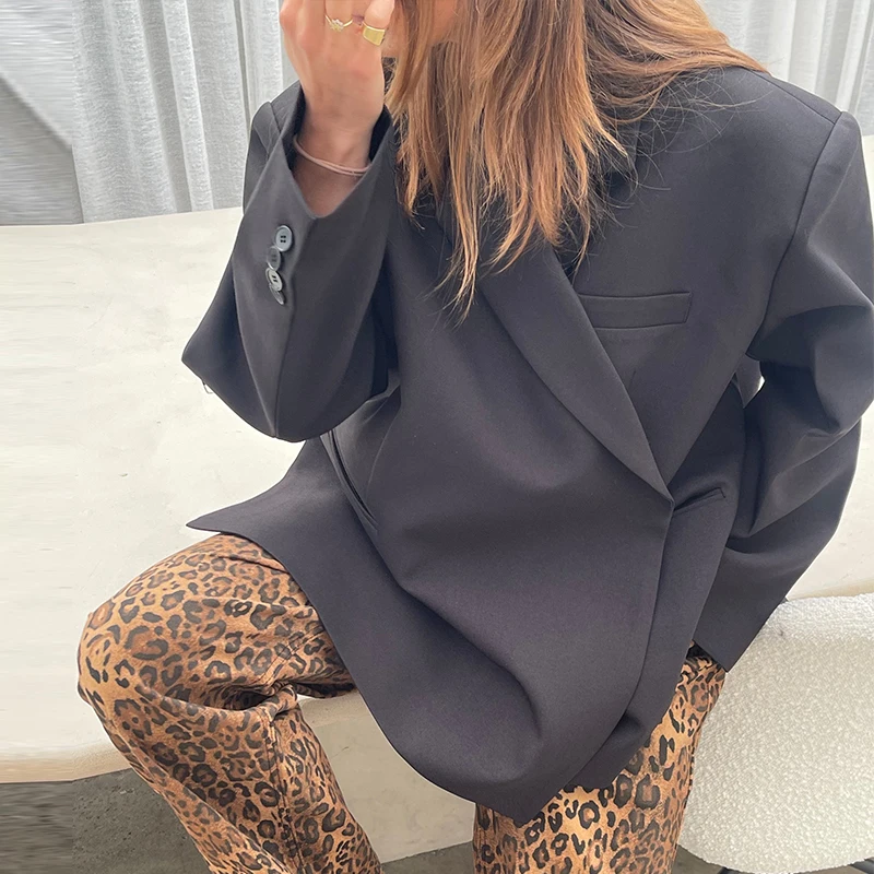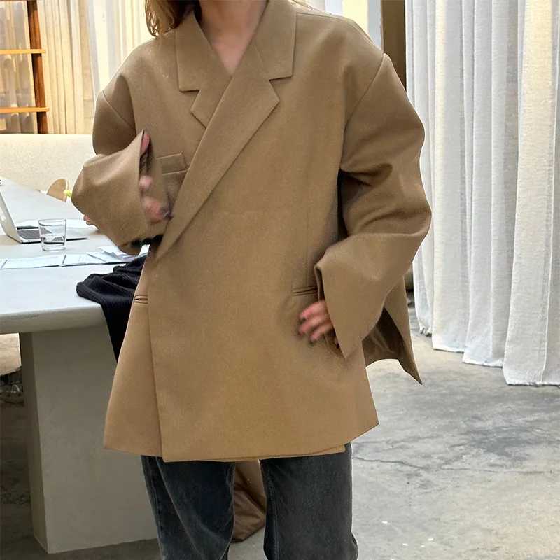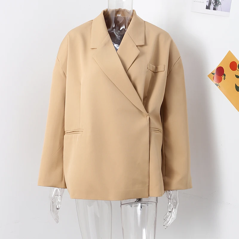 GETADME Fashion Lapel Suit Jacket for Women Casual Loose Long Sleeve Office Lady Coat 2025 New Chic Autumn Single Button Oversize Jacket