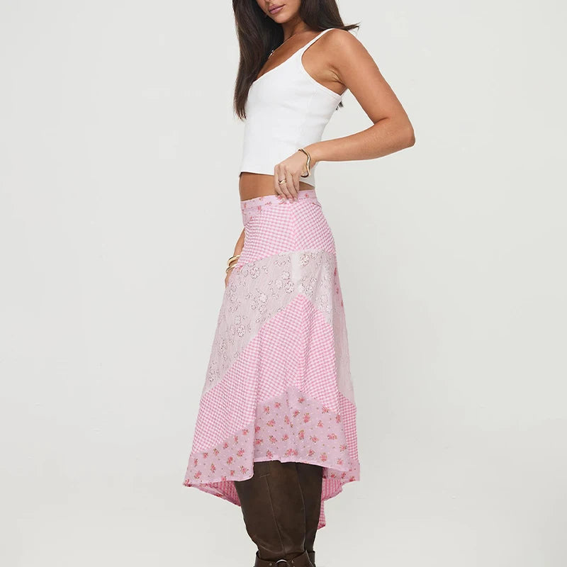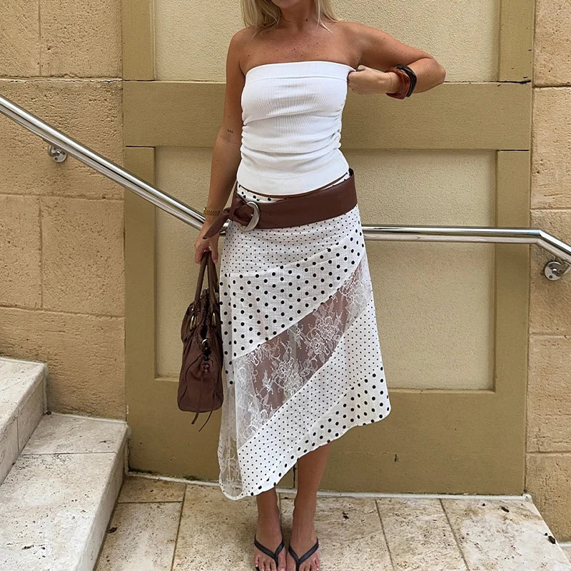 GETADME Fashion Polka Dot Printing Lace Patchwork Harajuke Women High Waist Skirts Irregular Streetwear Club Long Skirts