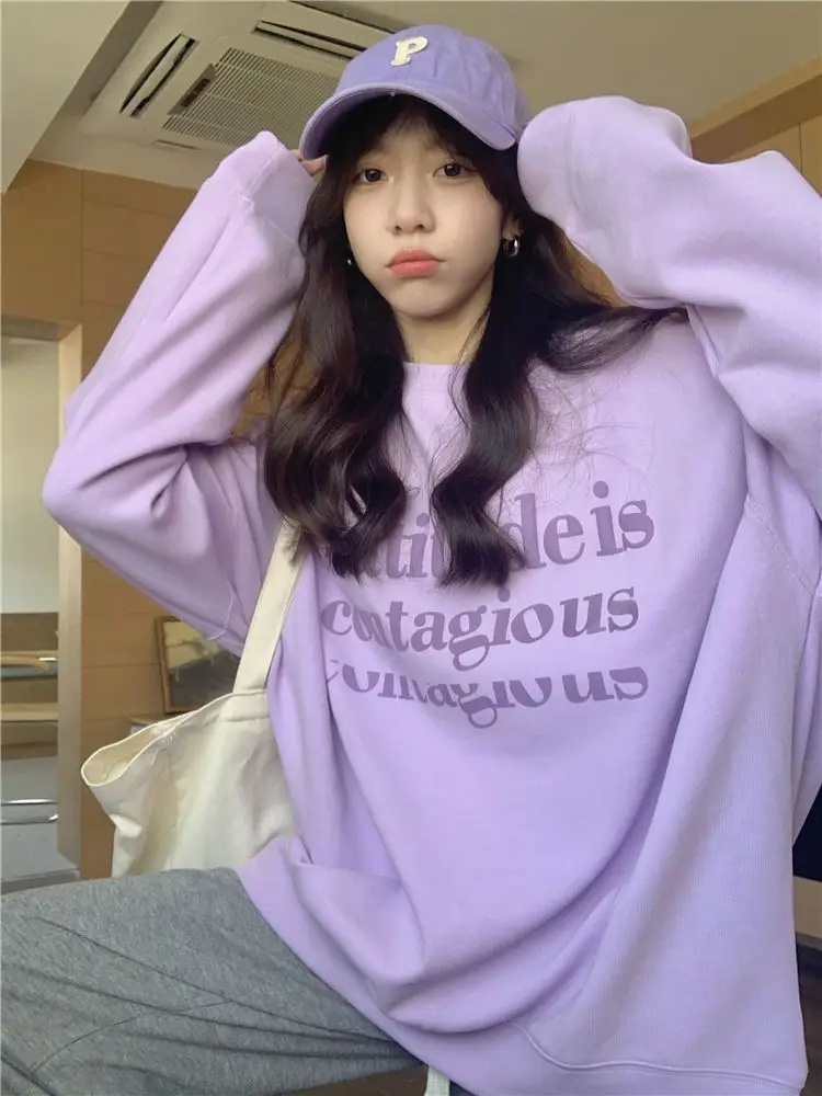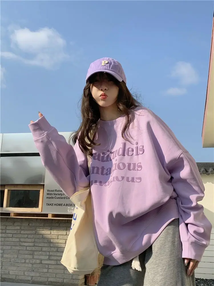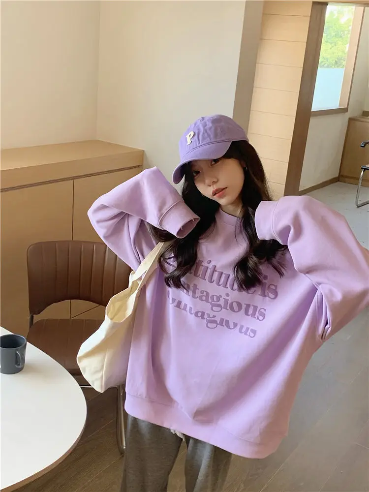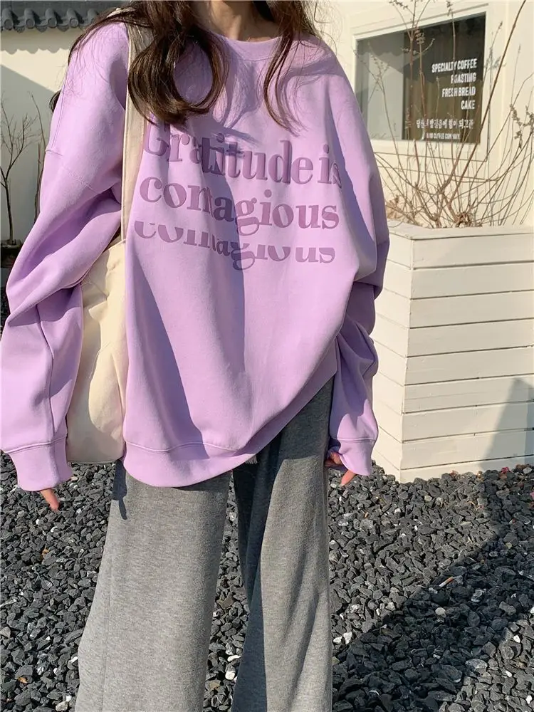 GETADME Fashion Solid Color Printing Letter Casual Sweatshirts Female Clothing 2024 Autumn Oversized Korean Tops All-match Sweatshirts