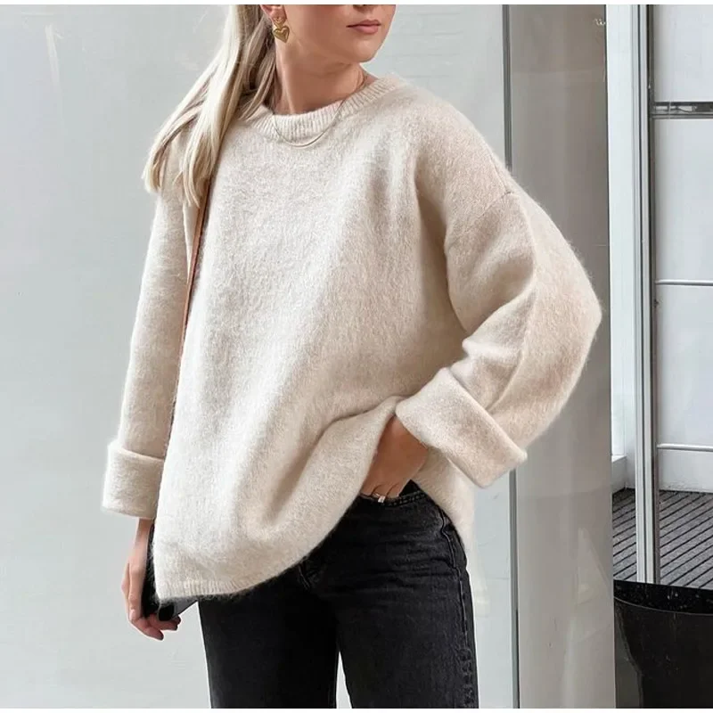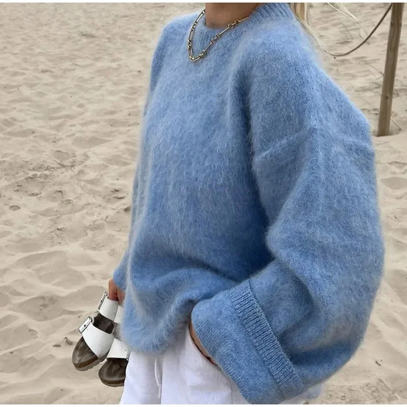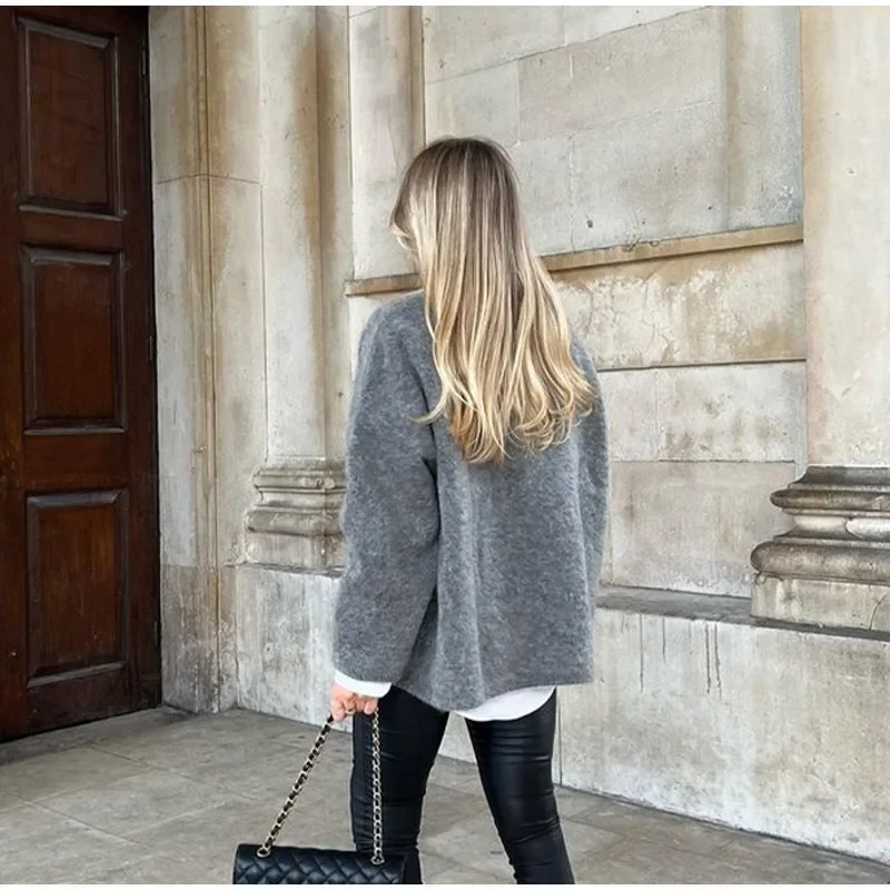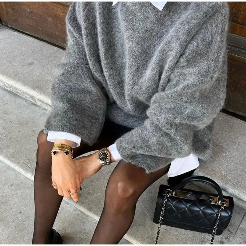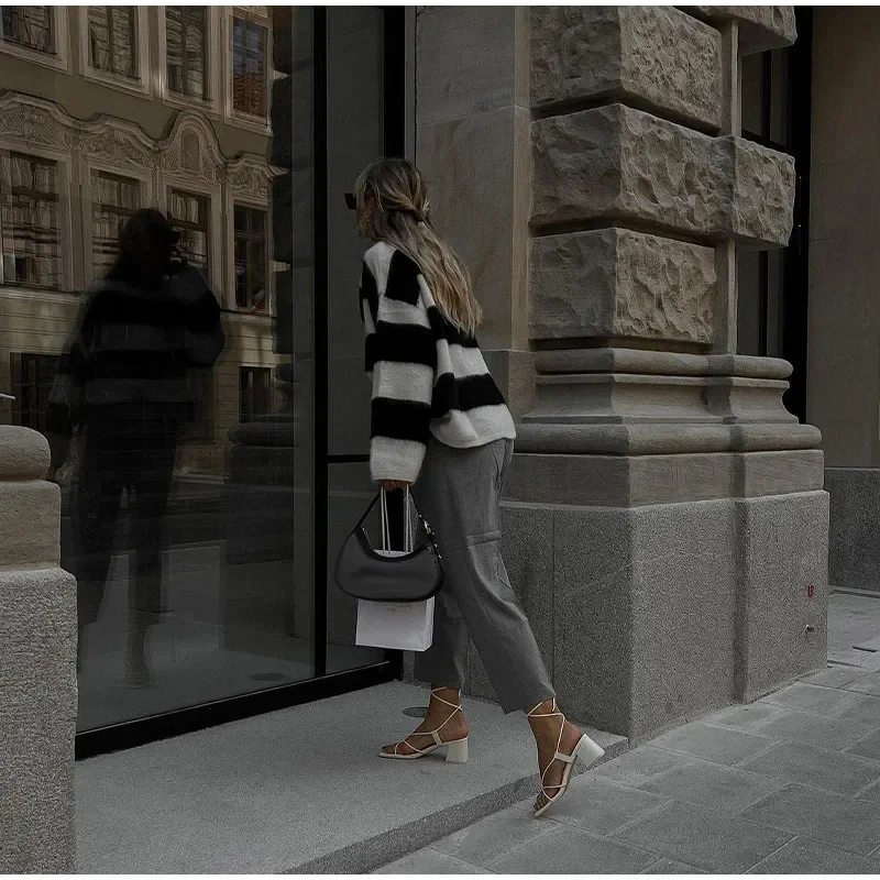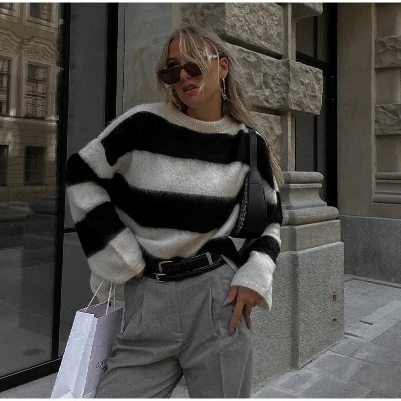GETADME Fashion Striped Women Knitted Sweater 2024 Spring Casual Long Sleeve O-neck Mohair Pullover Chic Loose All-match Female Knitwear