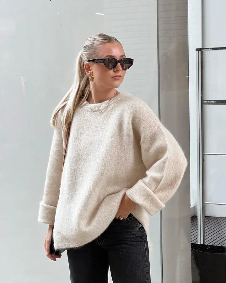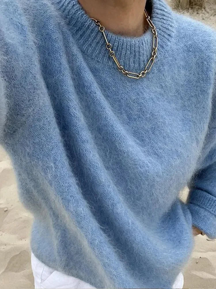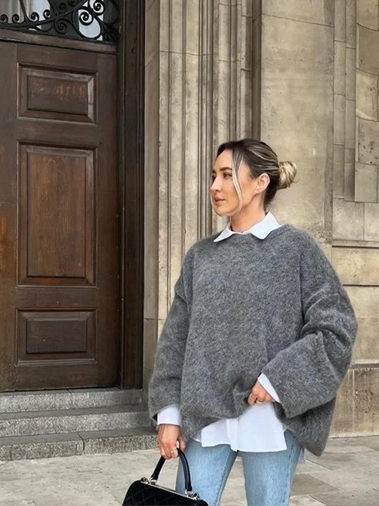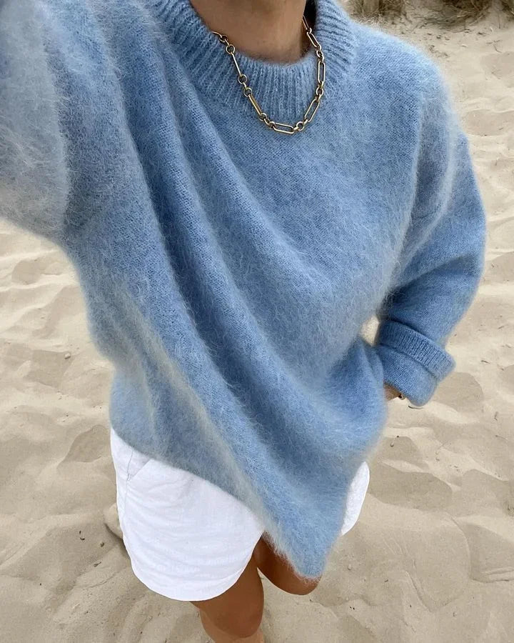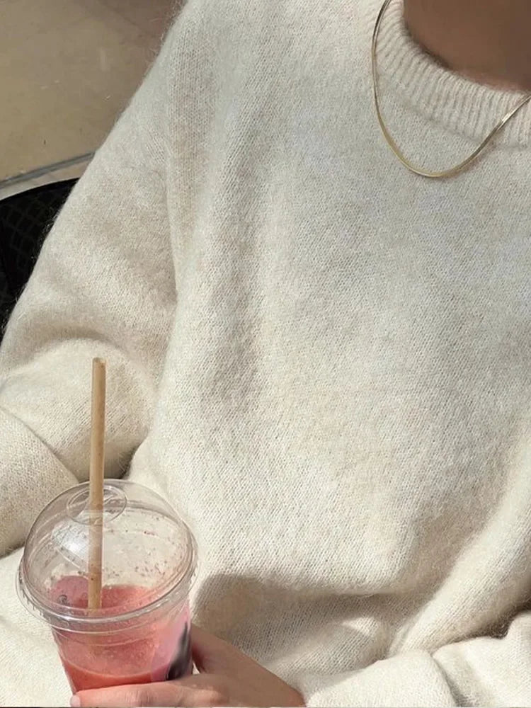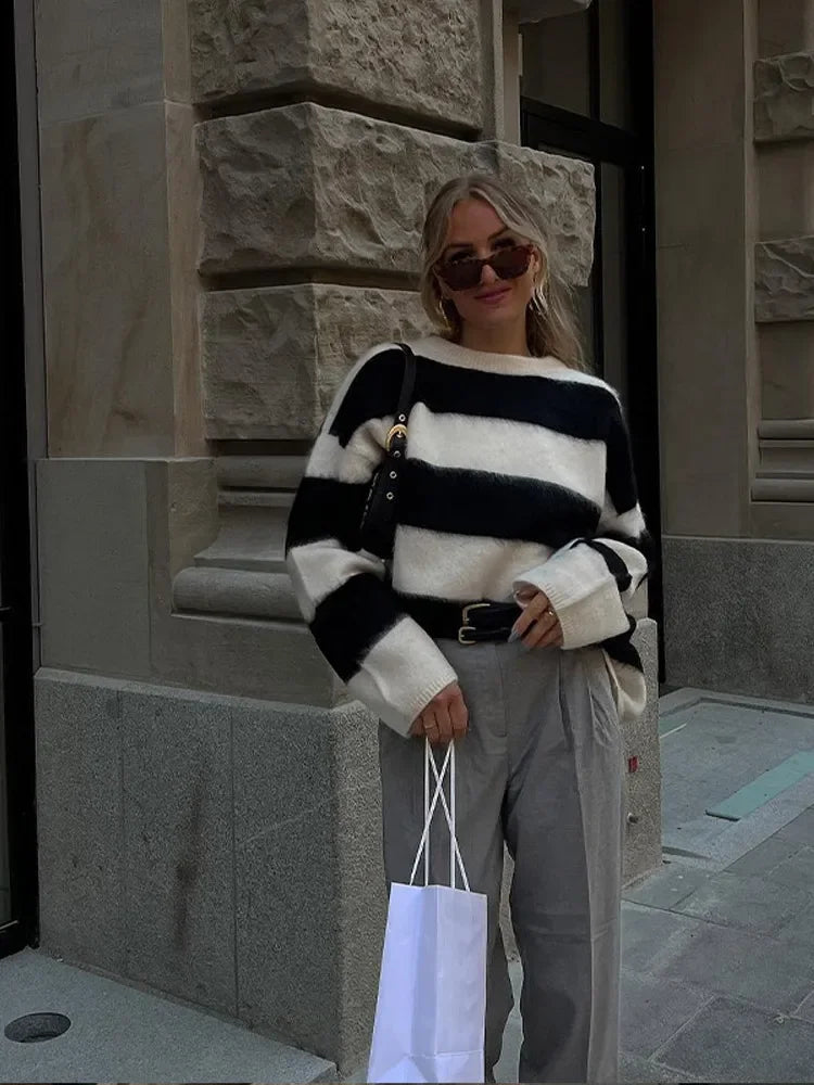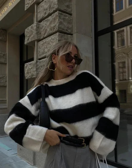 GETADME Fashion Striped Women Knitted Sweater 2024 Spring Casual Long Sleeve O-neck Mohair Pullover Chic Loose All-match Female Knitwear