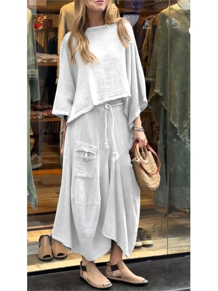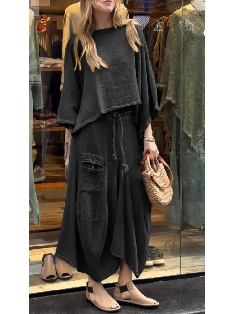 GETADME Fashionable O-neck Bell Sleeve Top + Skirt For Women Spring Summer Solid Color Pocket Lace Up Loose Casual Irregular Suit Female