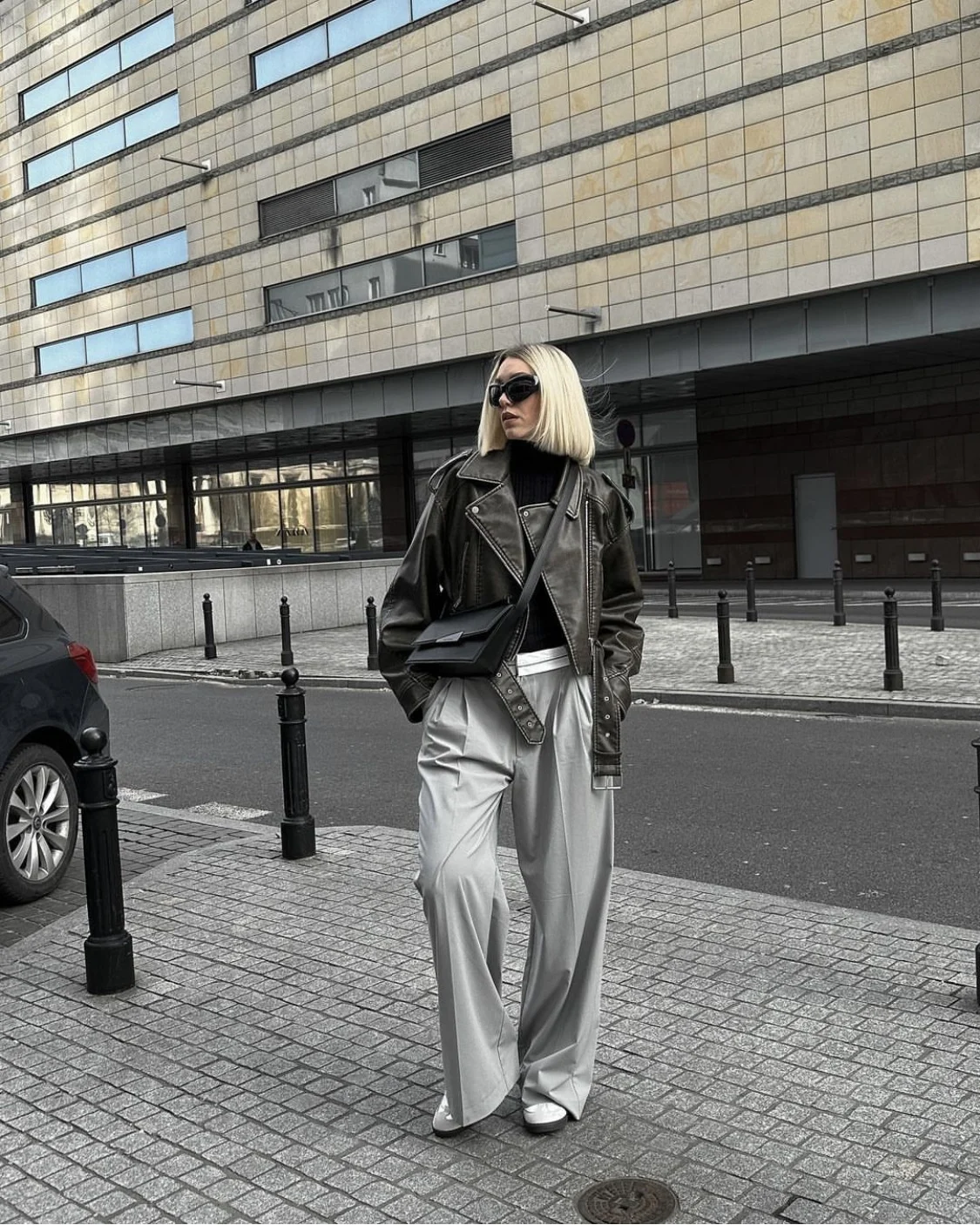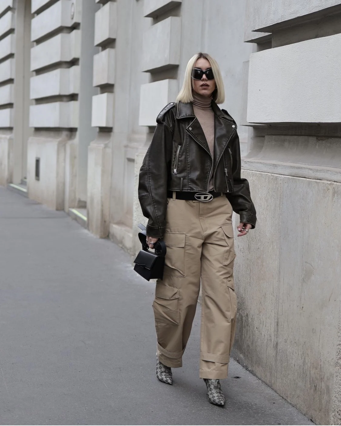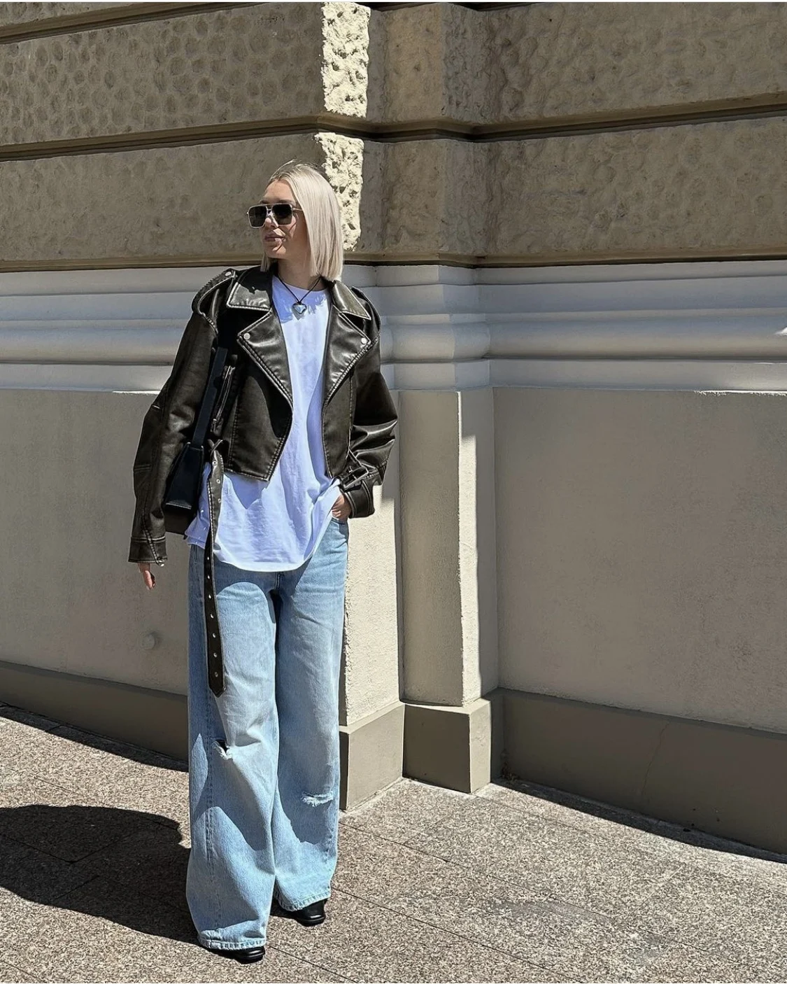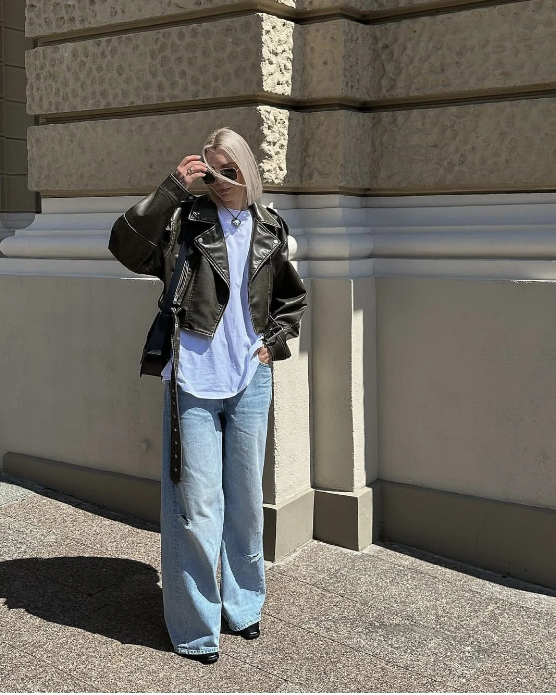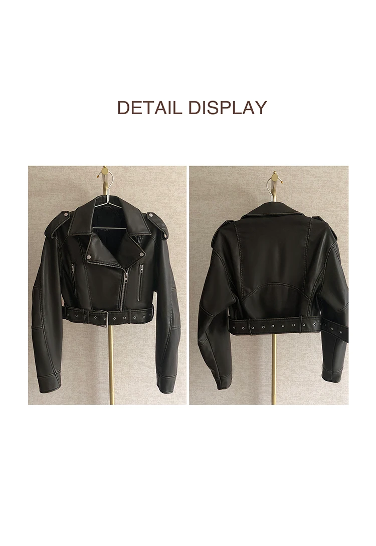 GETADME Fitaylor New Spring Autumn Vintage Moto Biker Pu Short Coat Women High Street Loose Lapel Zipper Faux Leather Jacket with Belt