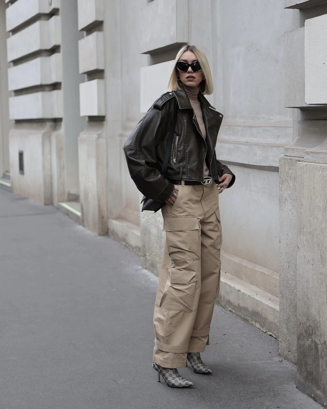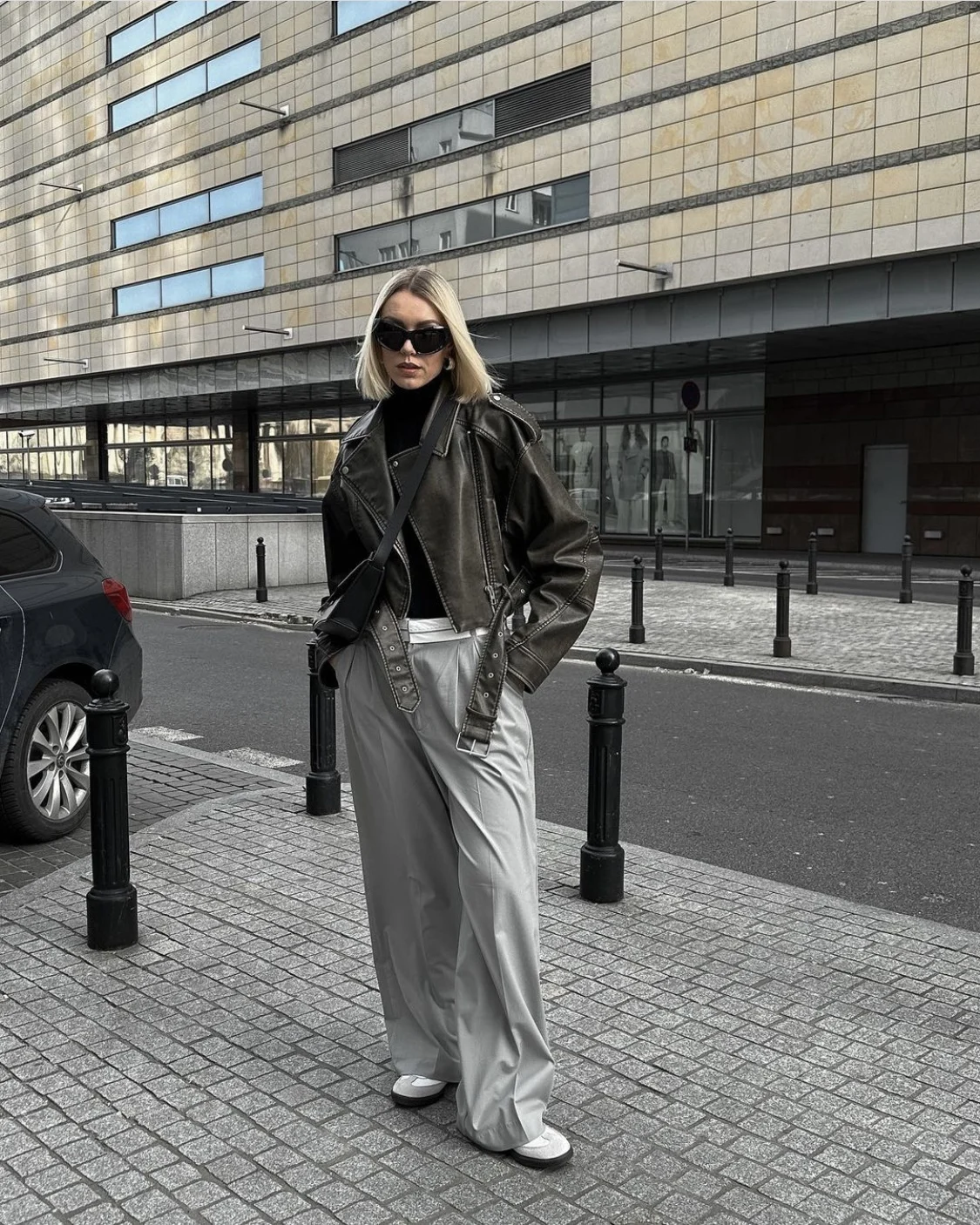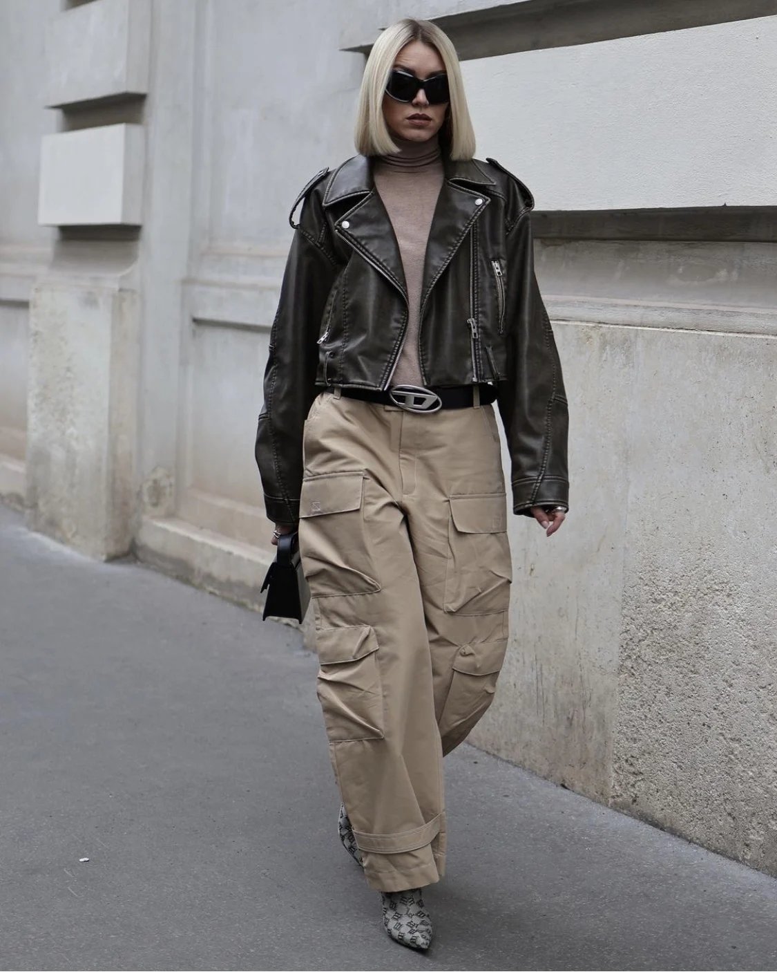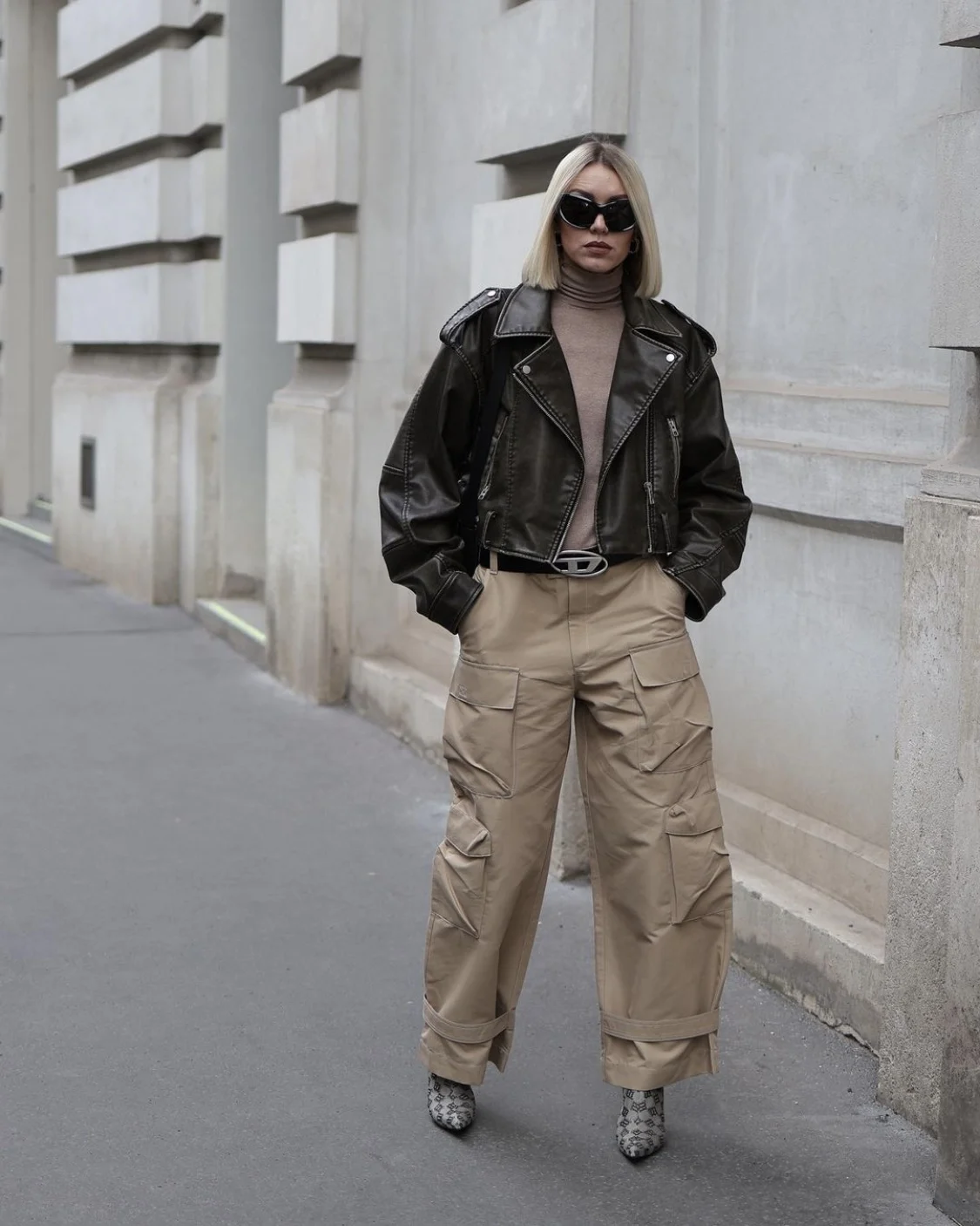 GETADME Fitaylor New Spring Autumn Vintage Moto Biker Pu Short Coat Women High Street Loose Lapel Zipper Faux Leather Jacket with Belt
