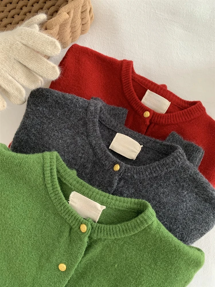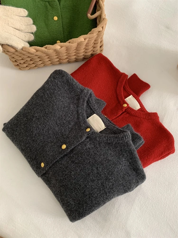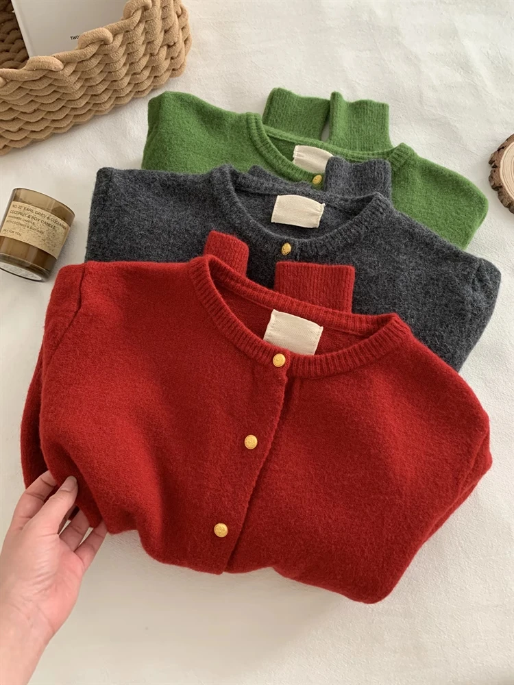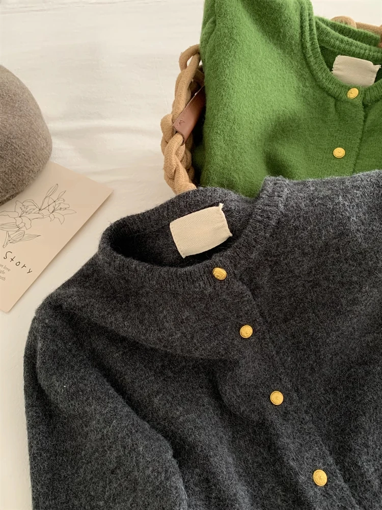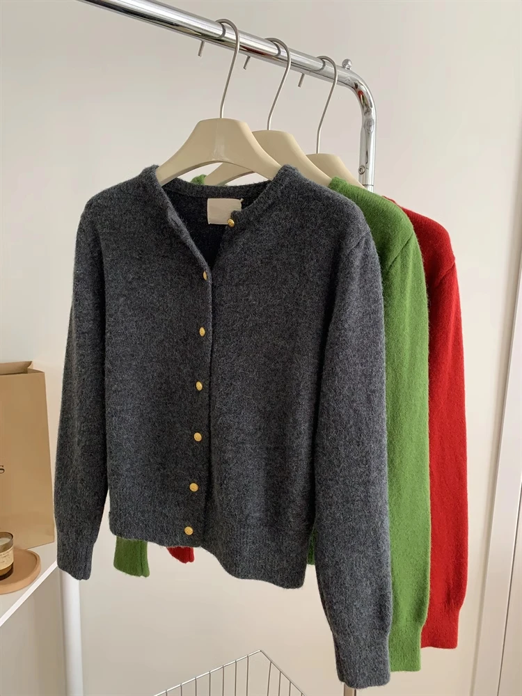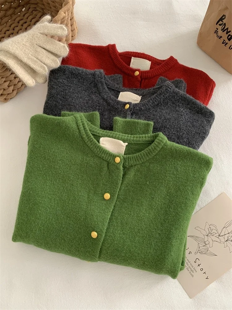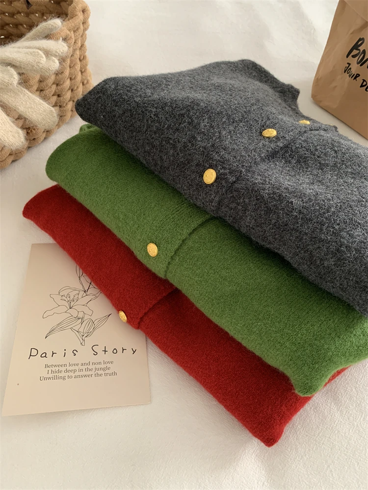 GETADME French Elegant Small Gold Button Knitted Cardigan 2025 Autumn/Winter Women's Green Round Neck Sweater Loose All-matched Jacket