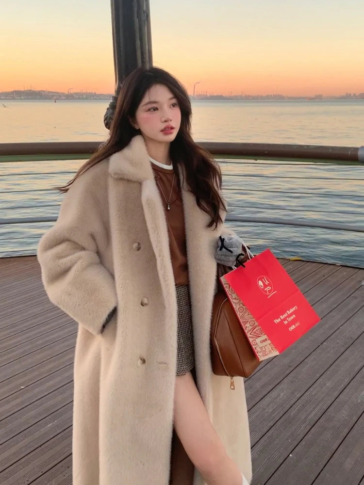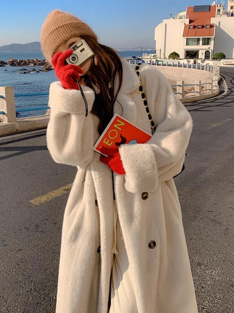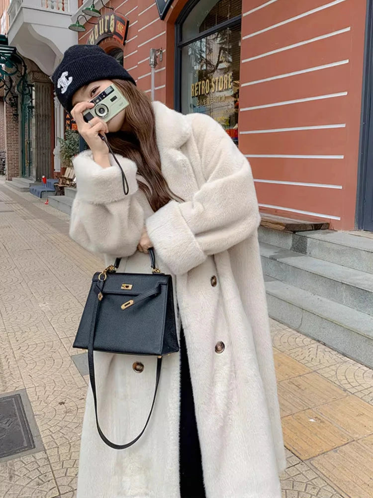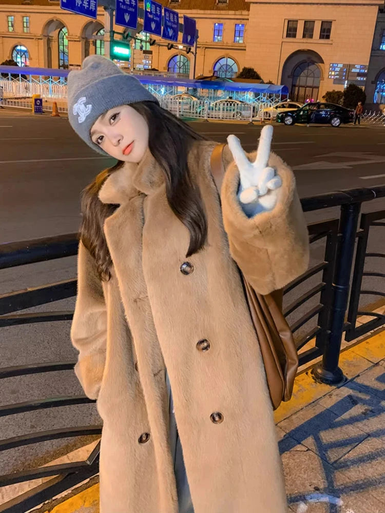 GETADME Fur One-piece Winter Thickened Long-suit Collar Imitation Mink Fur Eco-friendly Women's Coat Fashion Warm