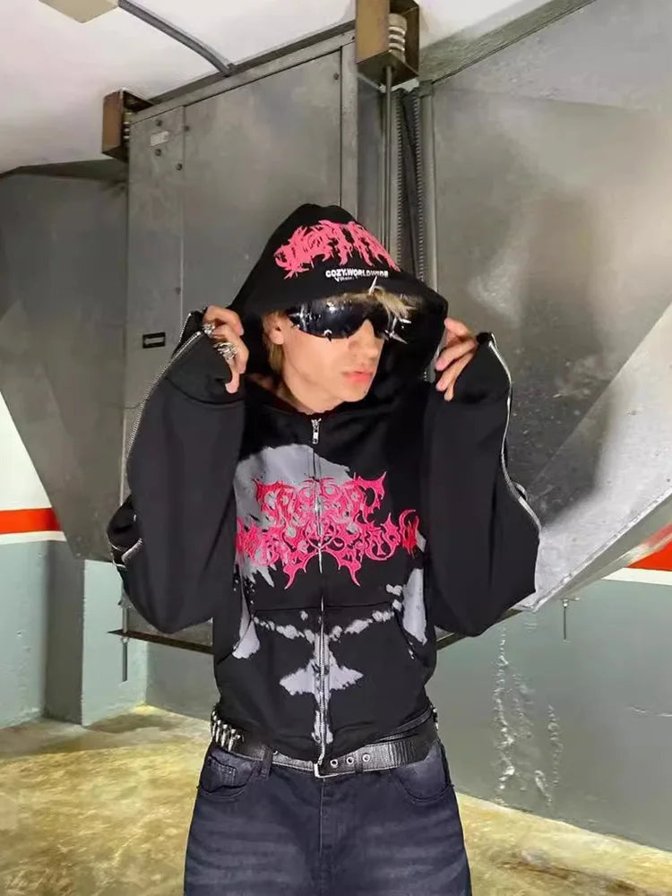 GETADME Gothic Retro Letter Print Picture Hip Hop Hoodie for Men's Clothing Y2k Harajuku Vintage Long Sleeves Loose Hoodies Sweatshirts