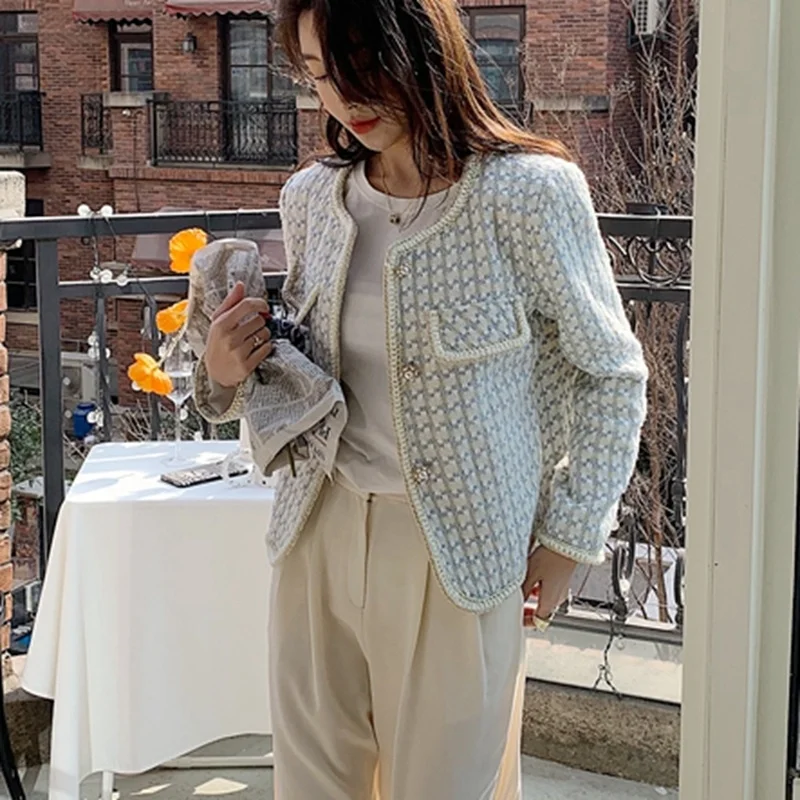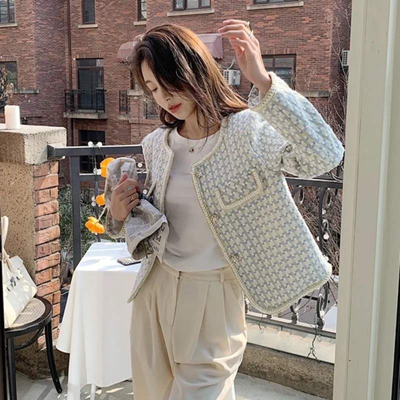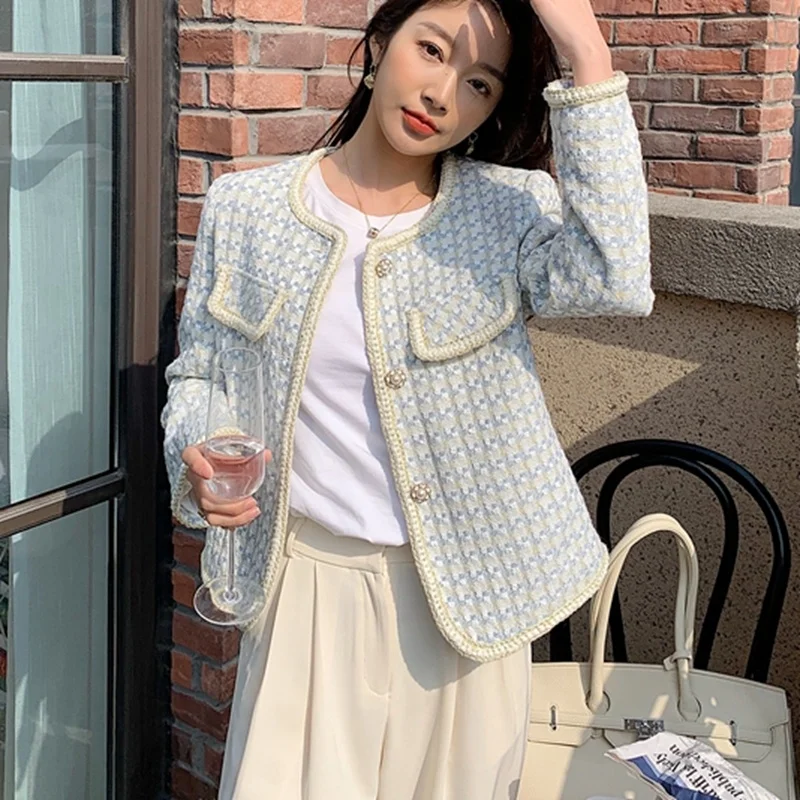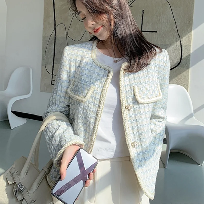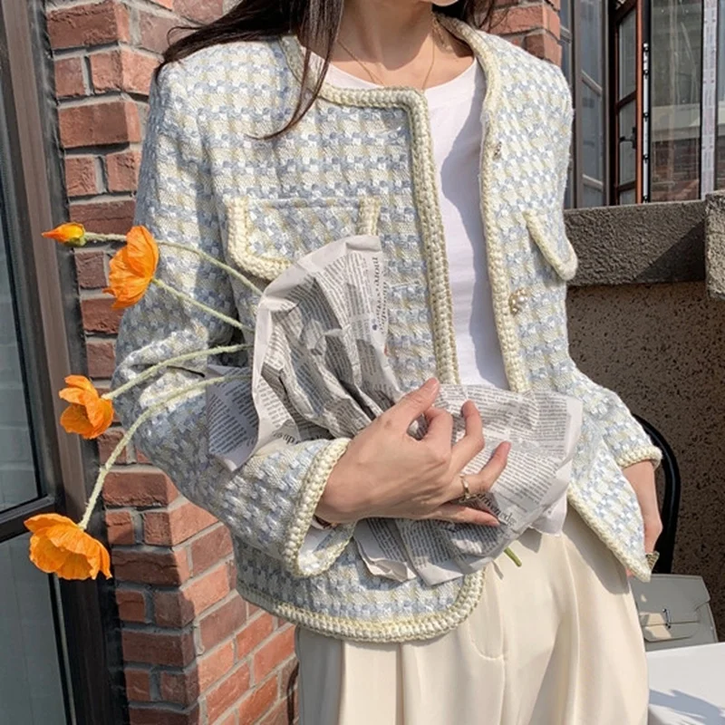 GETADME High Quality French Vintage Small Fragrance Tweed Jacket Coat Women's Spring Autumn Casual Fried Street Short Coat Plaid Outwear
