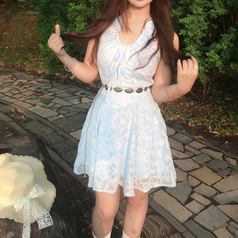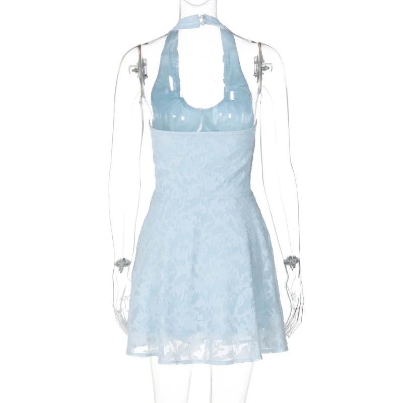 GETADME Hotsweet Summer Ladies Halter Neck Backless Chic Jacquard Double Layer A-line Party Dress Sleeveless Birthay Rural Style Outfits