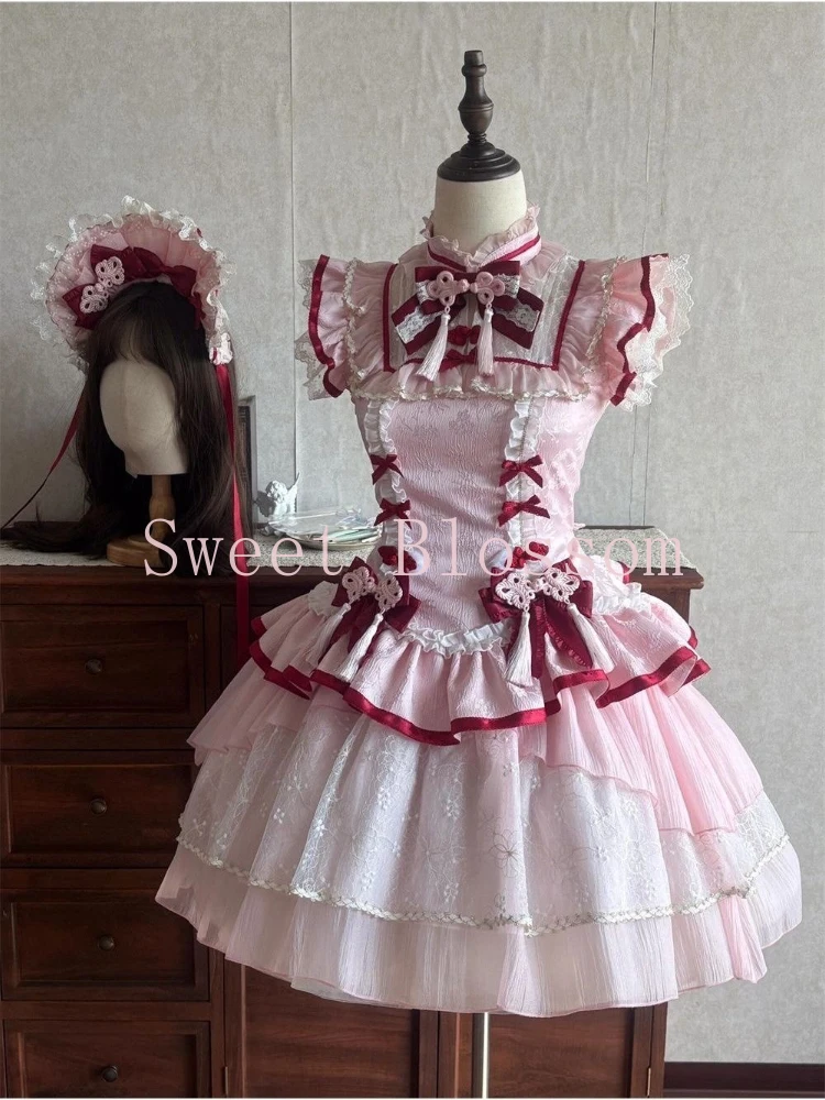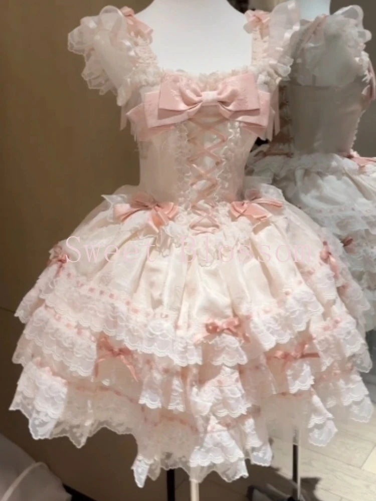 GETADME Japanese Sweet Lolita Kawaii Fluffy Dress Women JK Lovely Ballet Princess Cake Dresses Harajuku Lace Bow Patchwork Cute Outfit