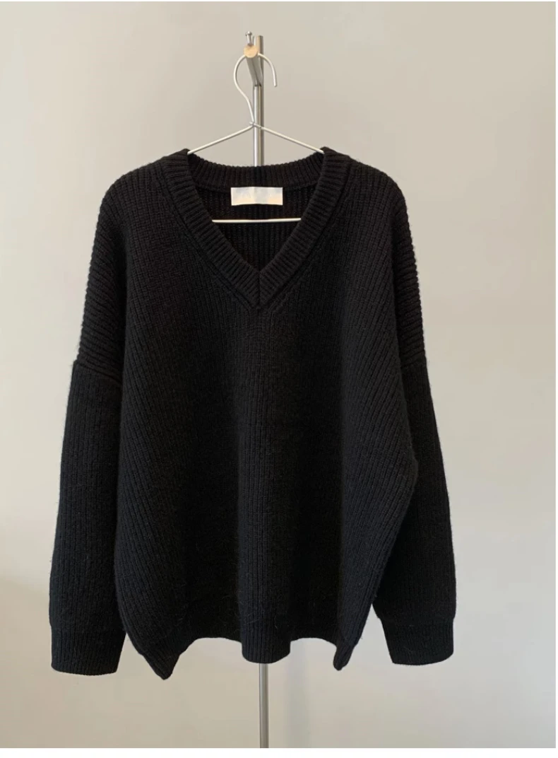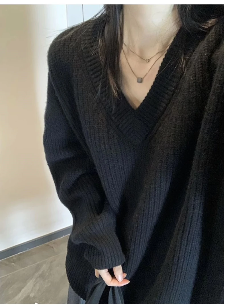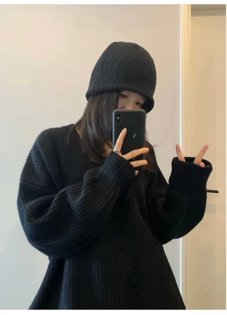 GETADME Jielur Autumn New Solid Color Slim Chic Women Pullovers Simple Basic Street Pullovers Woman Black Casual Loose Fashion Sweaters