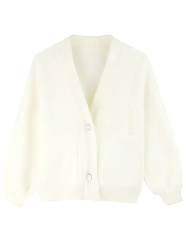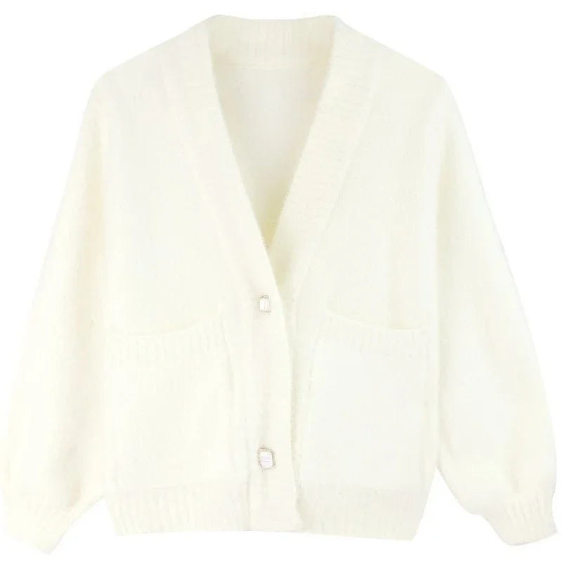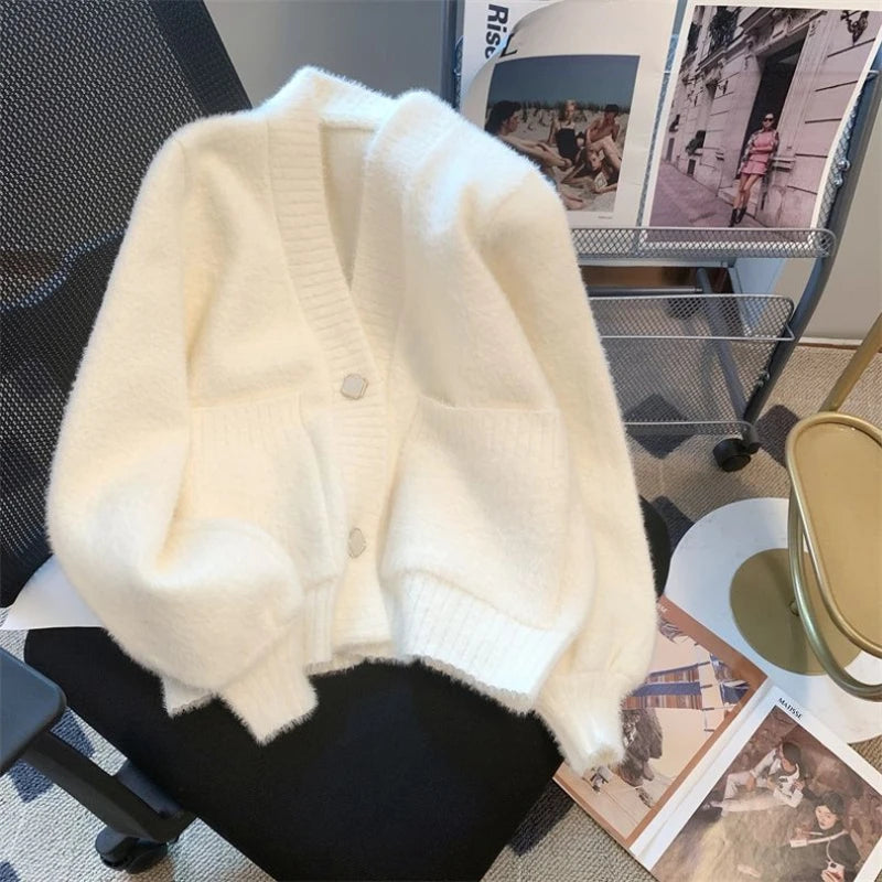 Getadme Kawaii Knit Tops for Woman Cardigan Winter Button Cute Women's Sweater White Autumn 2025 New in Korean Luxury Long Sleeve Trend