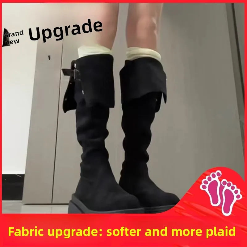 GETADME Knee-high Faion Boots Women's round Toe High Heel Thi Bot Long Boots Autumn Winter New Coarse Heel Knight Boots