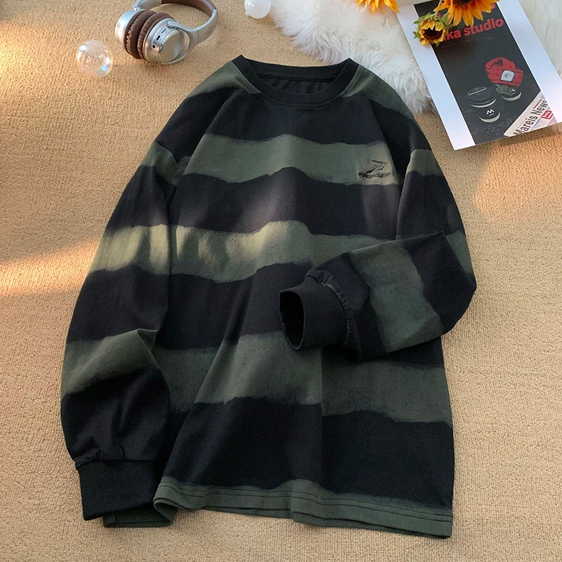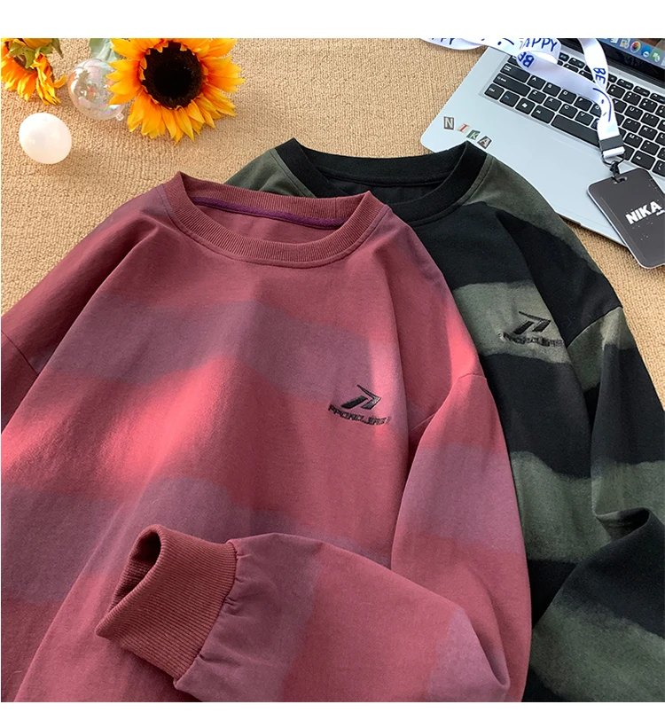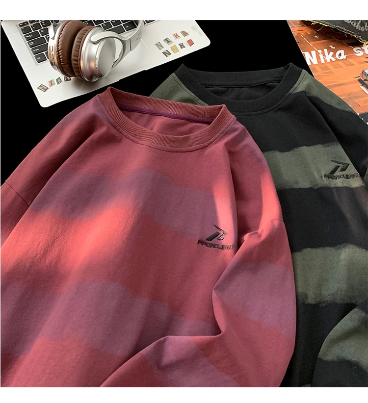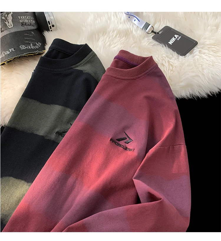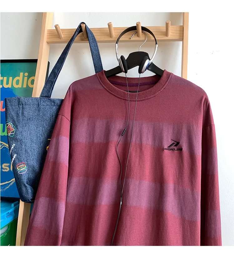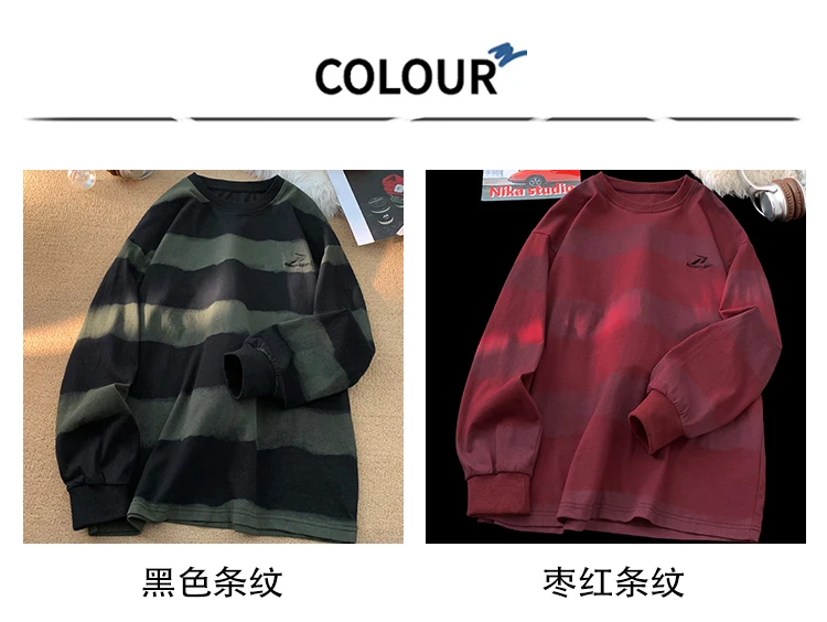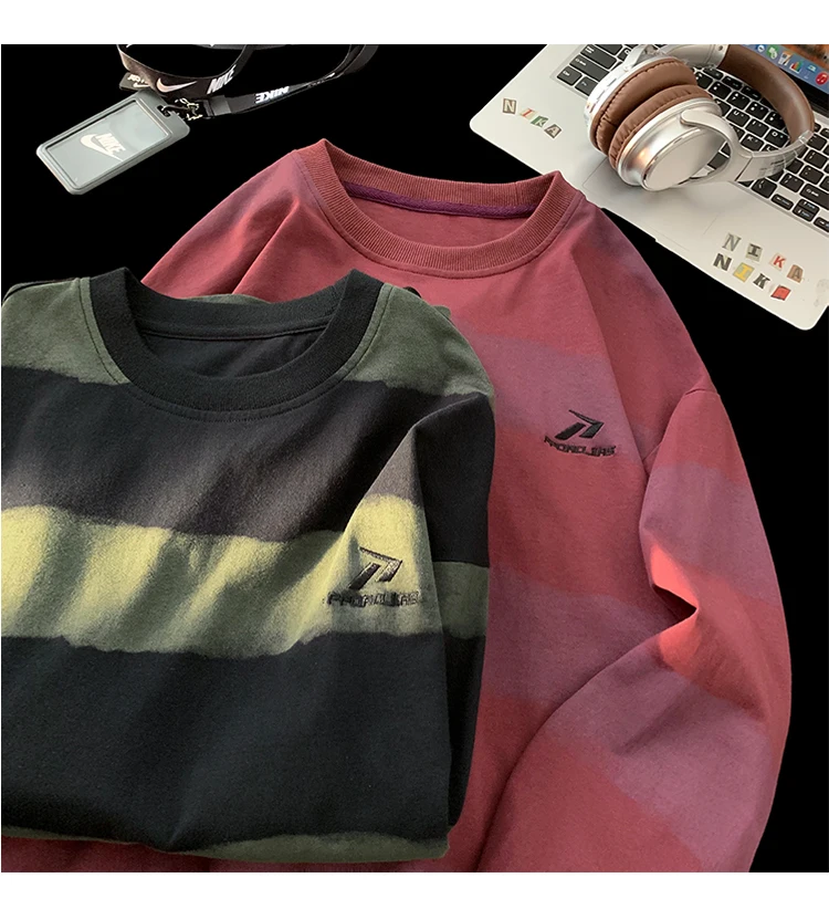 GETADME Korean Clashing Striped Long Sleeve T-Shirt 2025 Autumn Man Round Neck Sweatshirt Trendy Couples Loose Fit Male Sweatshirts