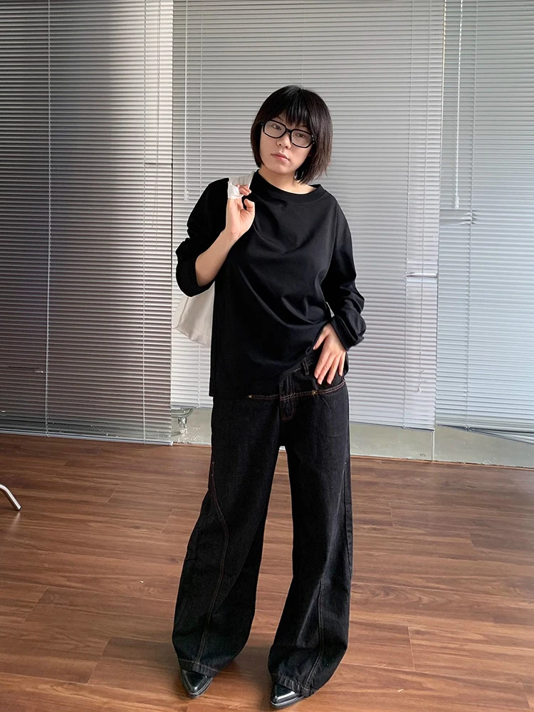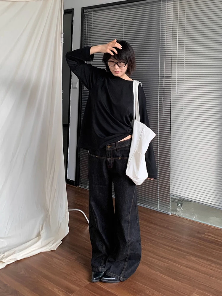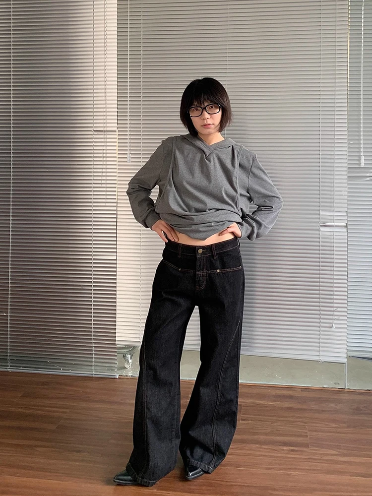 GETADME Korean Fashion Wide Leg Denim Jeans Women High Waist Loose Baggy Pants Streetwear Y2K Straight Trousers Vintage Female Pants