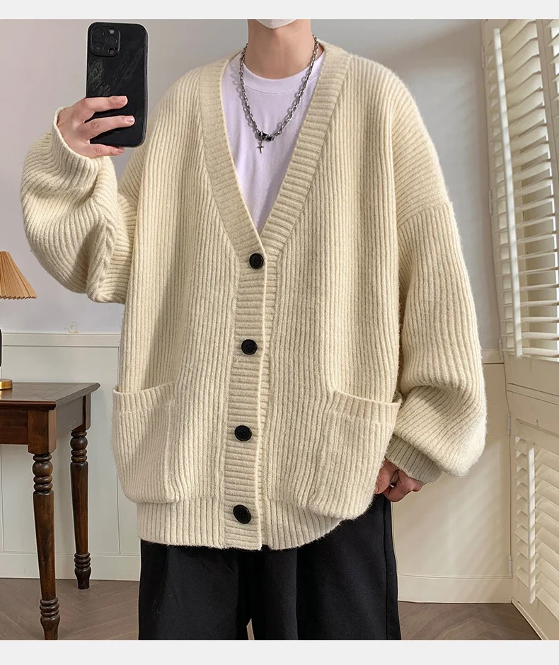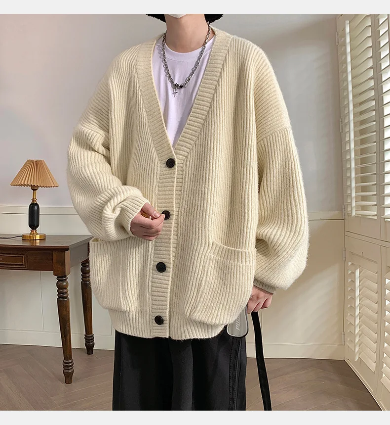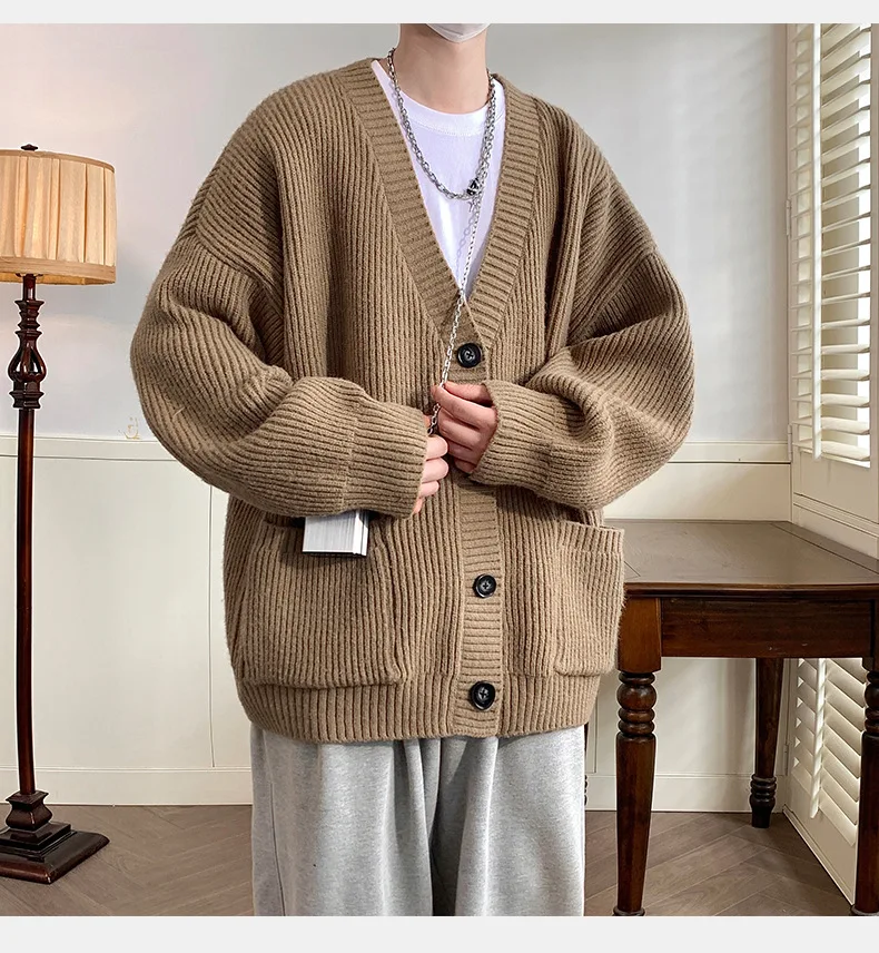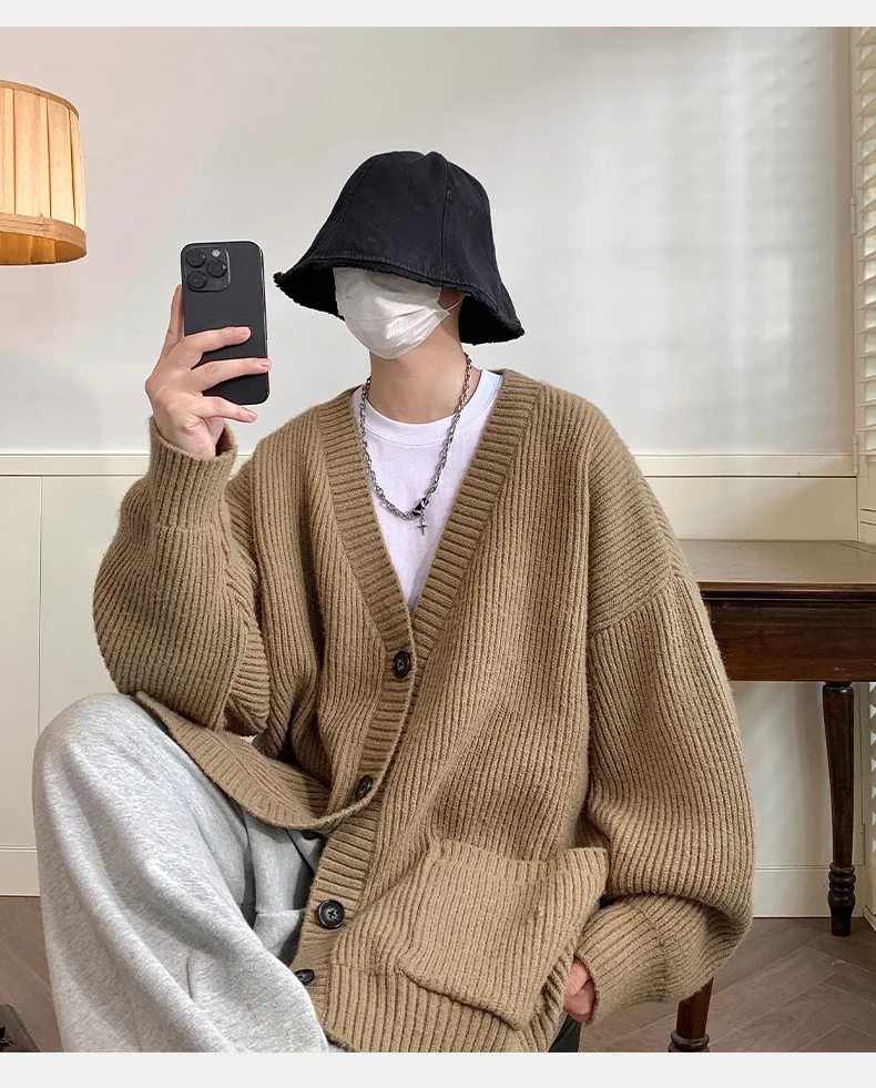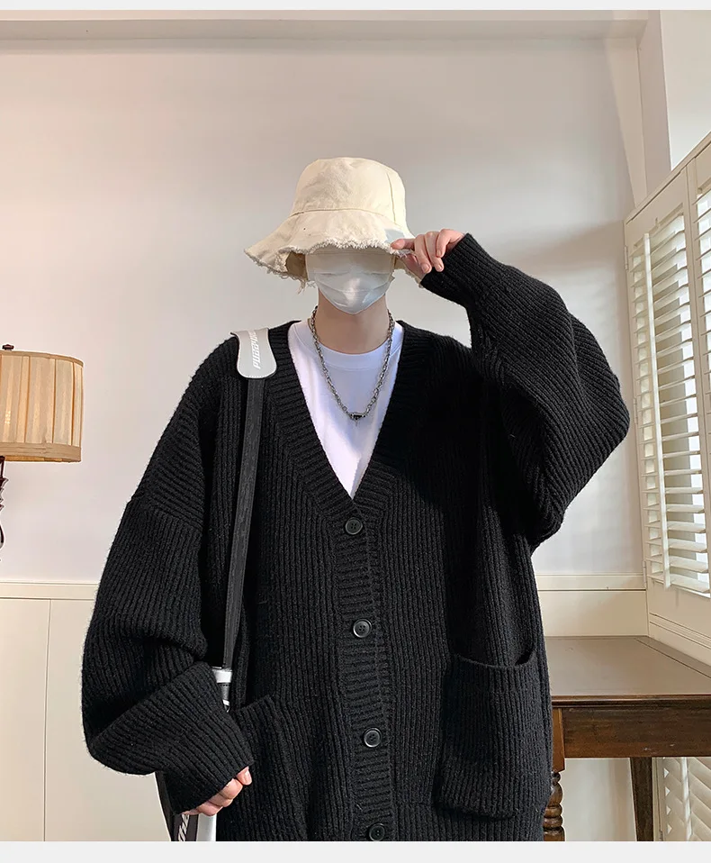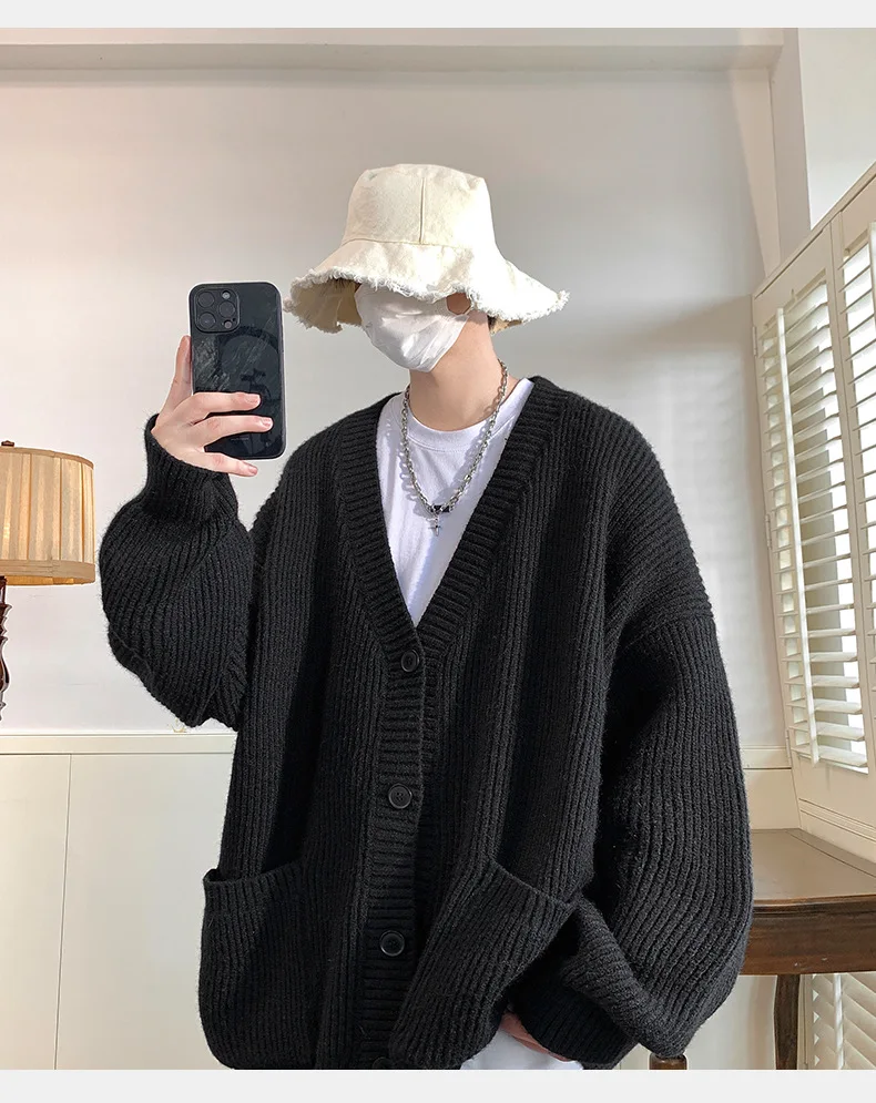 GETADME Lazy Style Japanese High Neck Cardigan Sweater Men's Autumn Winter Solid Warm Knit Sweater Loose Standing Collar Jacket Soft