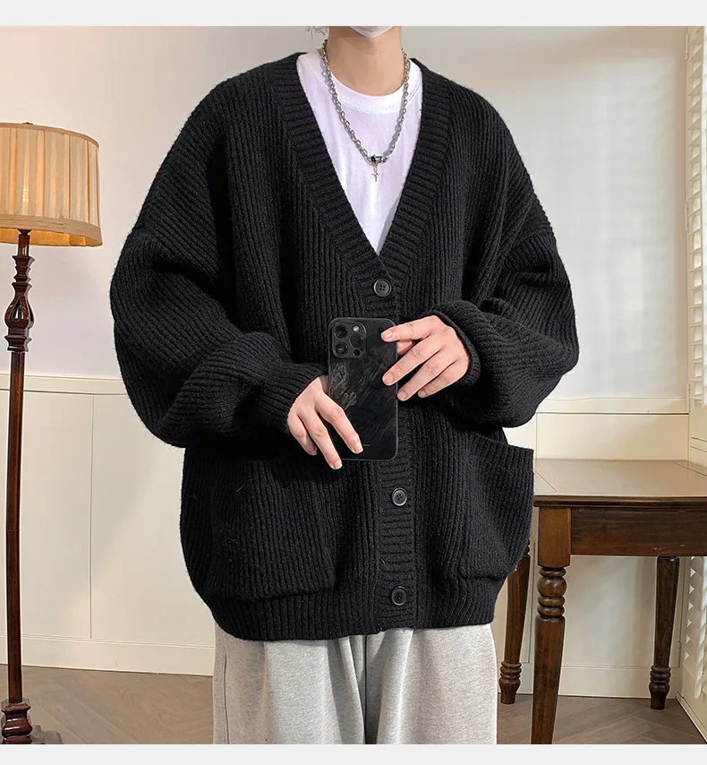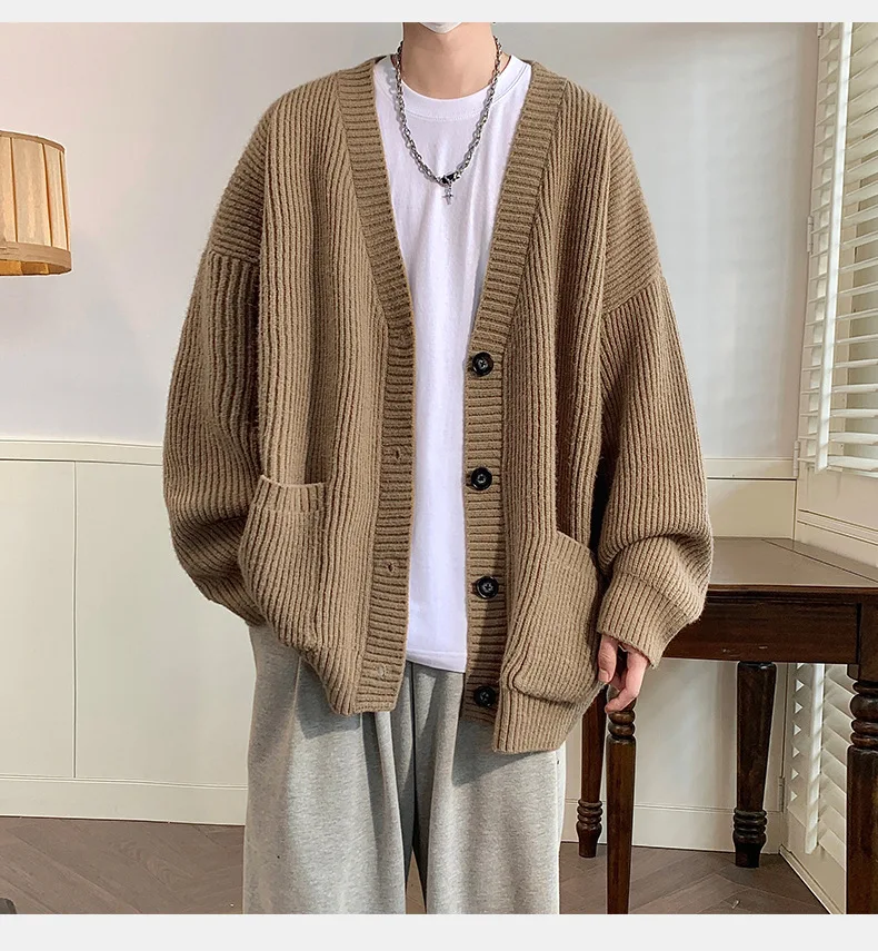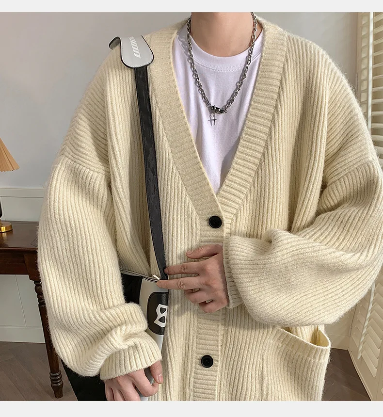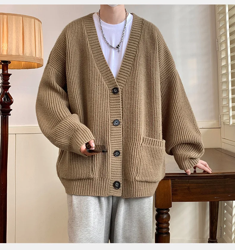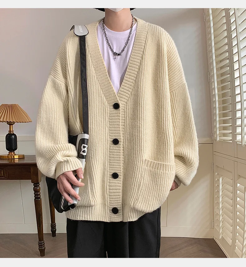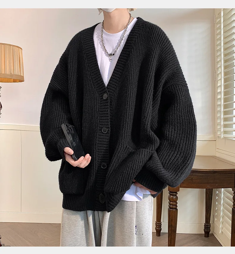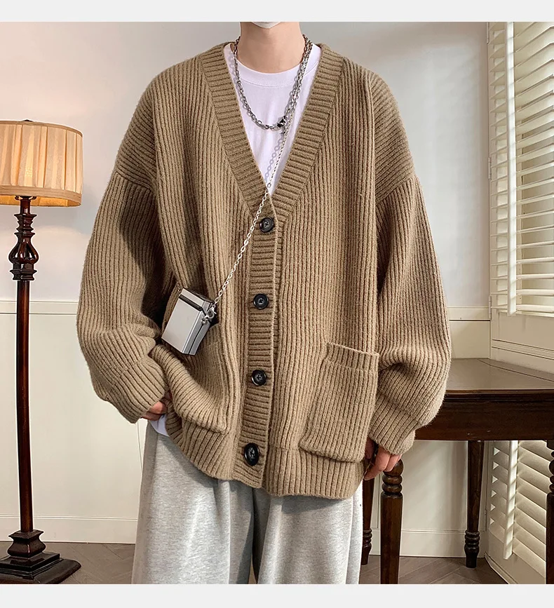 GETADME Lazy Style Japanese High Neck Cardigan Sweater Men's Autumn Winter Solid Warm Knit Sweater Loose Standing Collar Jacket Soft