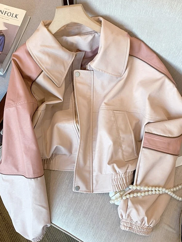 GETADME Leather Coat Women's Spring 2025 New Motorcycle Jacket leather jacket women Women jacket women's jackets in promotions