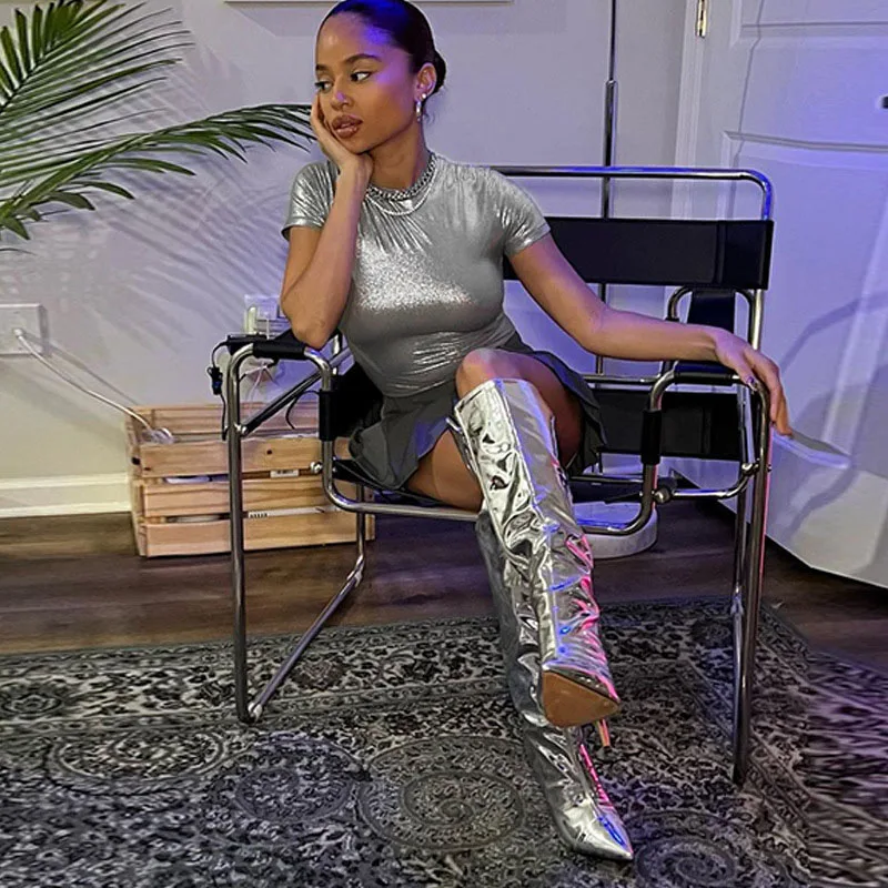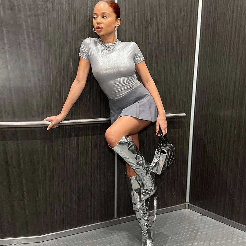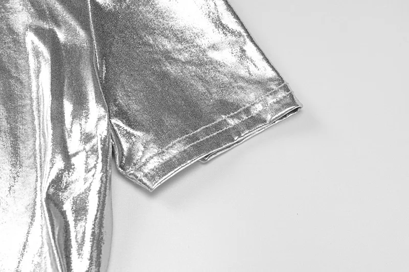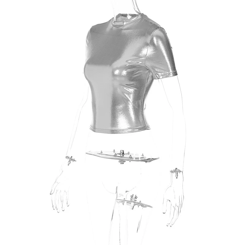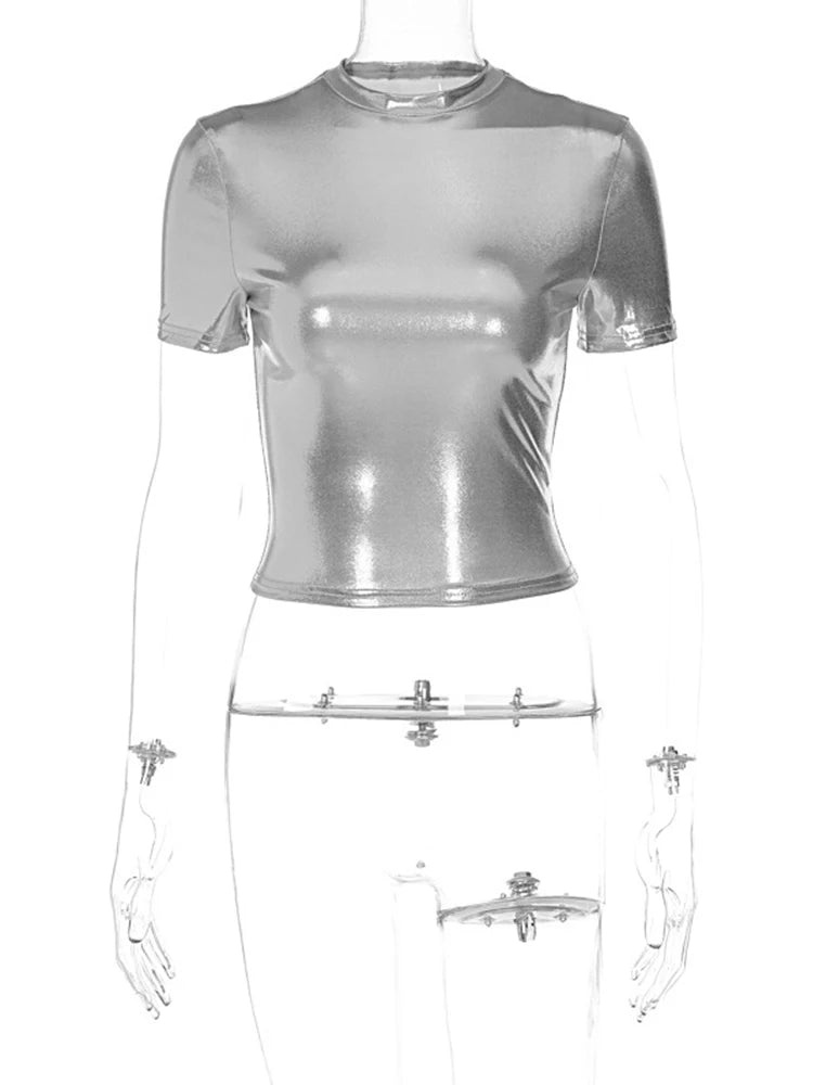 GETADME Leather Solid O Neck Short Sleeves Sexy Slim Y2K T-Shirt Top 2025 Summer Women Fashion Tees Streetwear Grunge Clothes