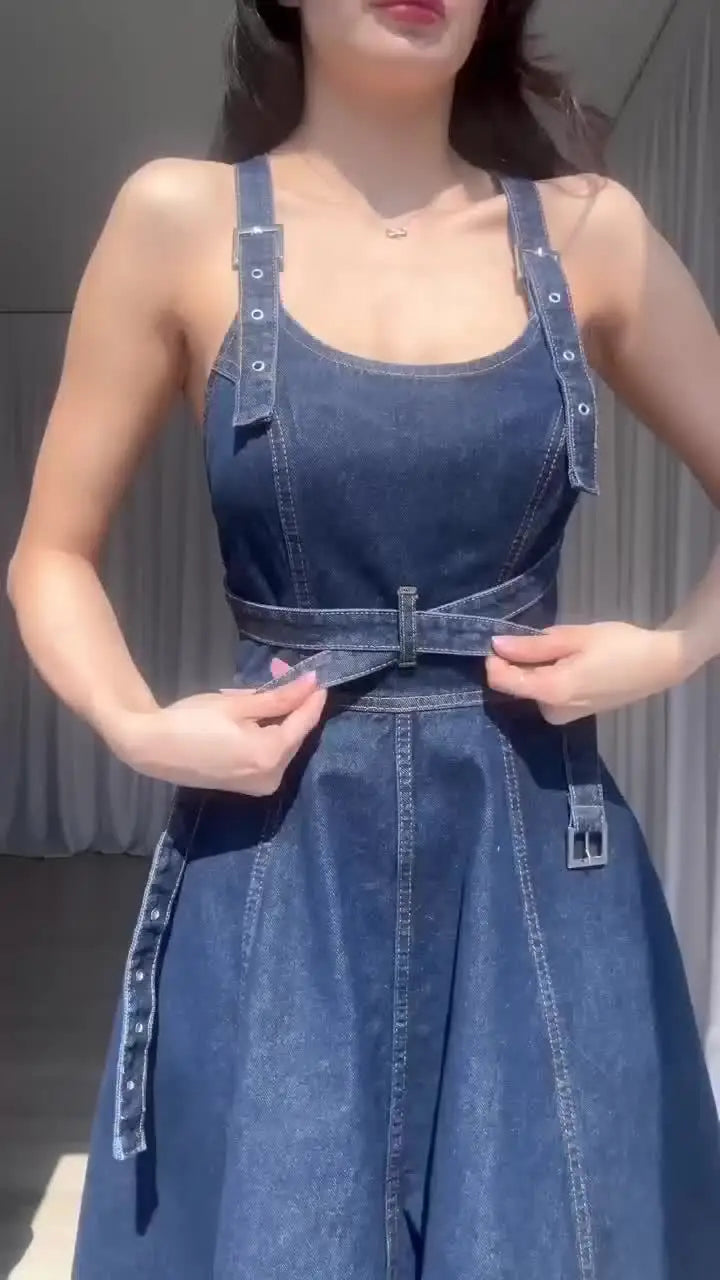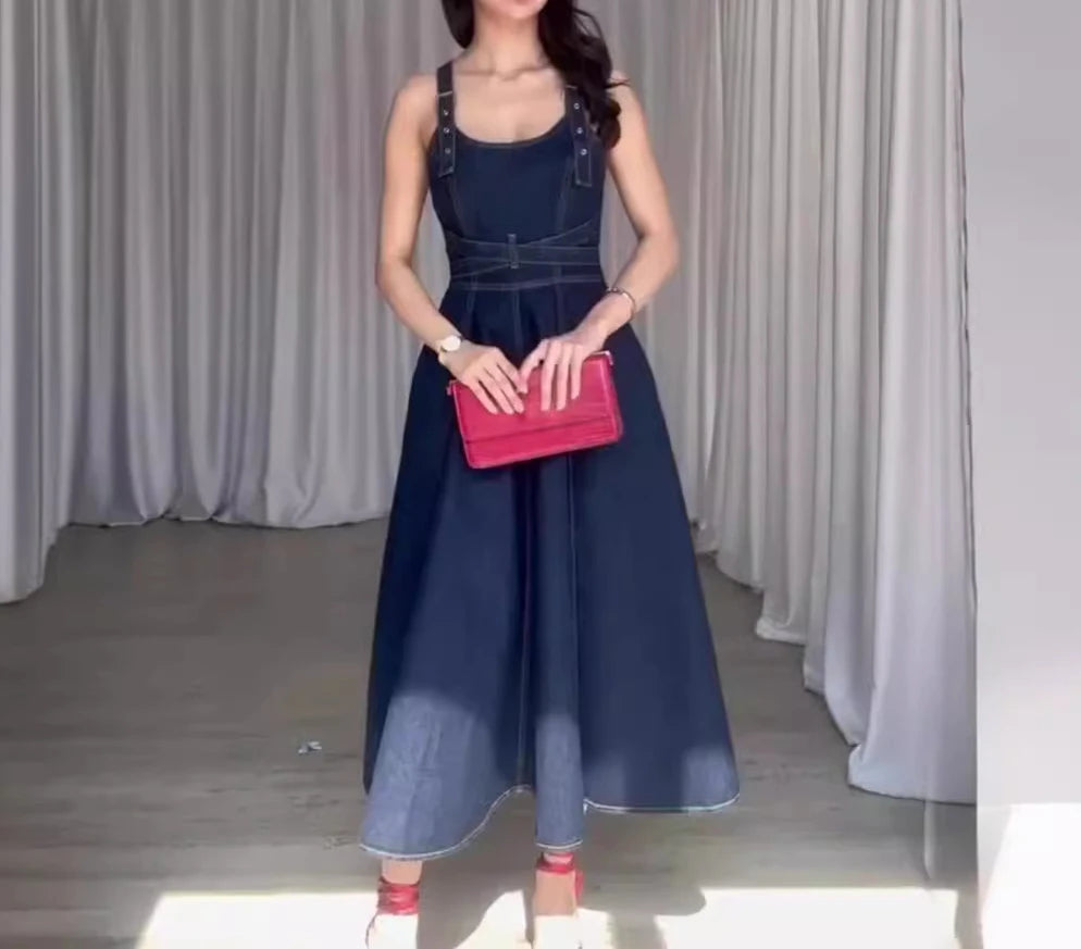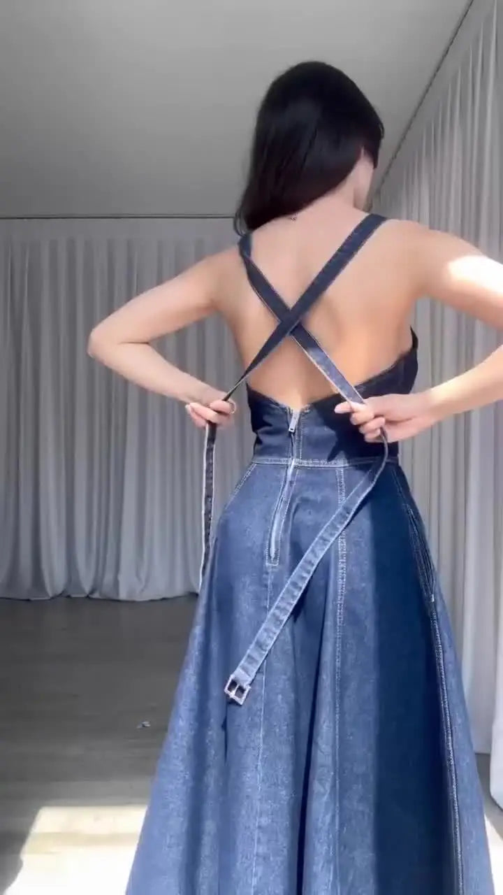 GETADME Long Summer Dresses 2025 Detachable Shoulder Strap with Exposed Back Design for A Waist Cinching Skirt Sleeveless Dress Female
