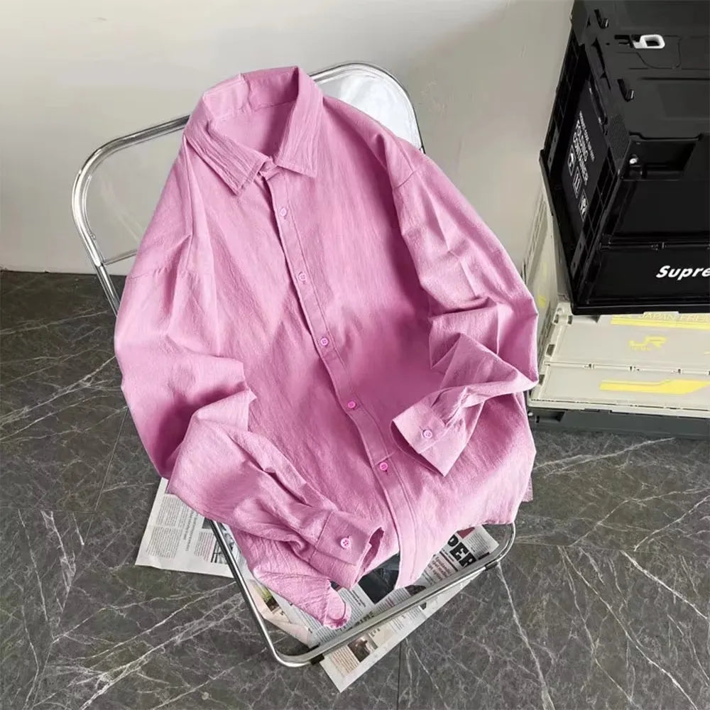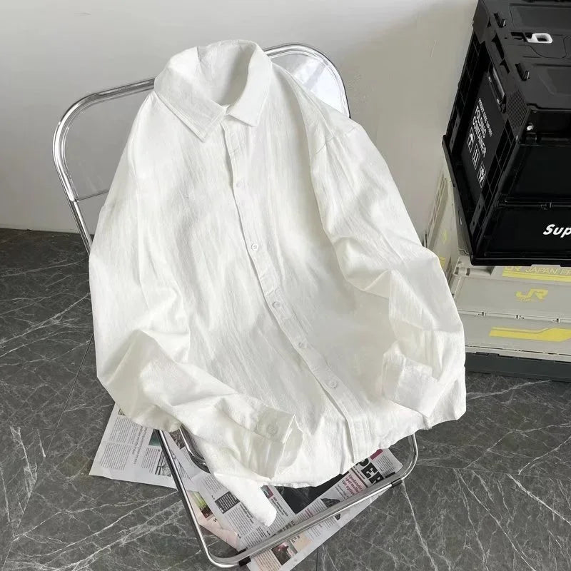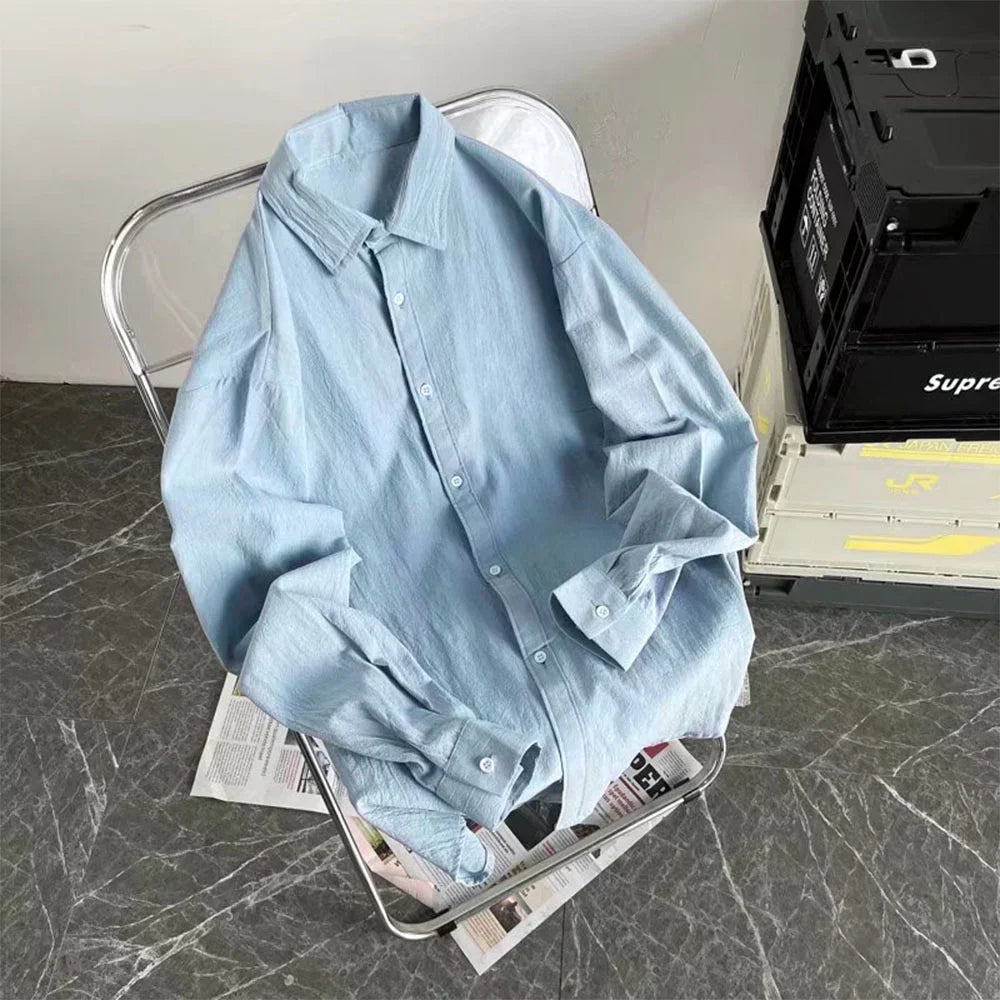 GETADME Men's Loose Long Sleeve Shirts Casual Solid Colors Cotton Linen Cool Summer Breathable Trendy Baggy Shirt Male Button Up